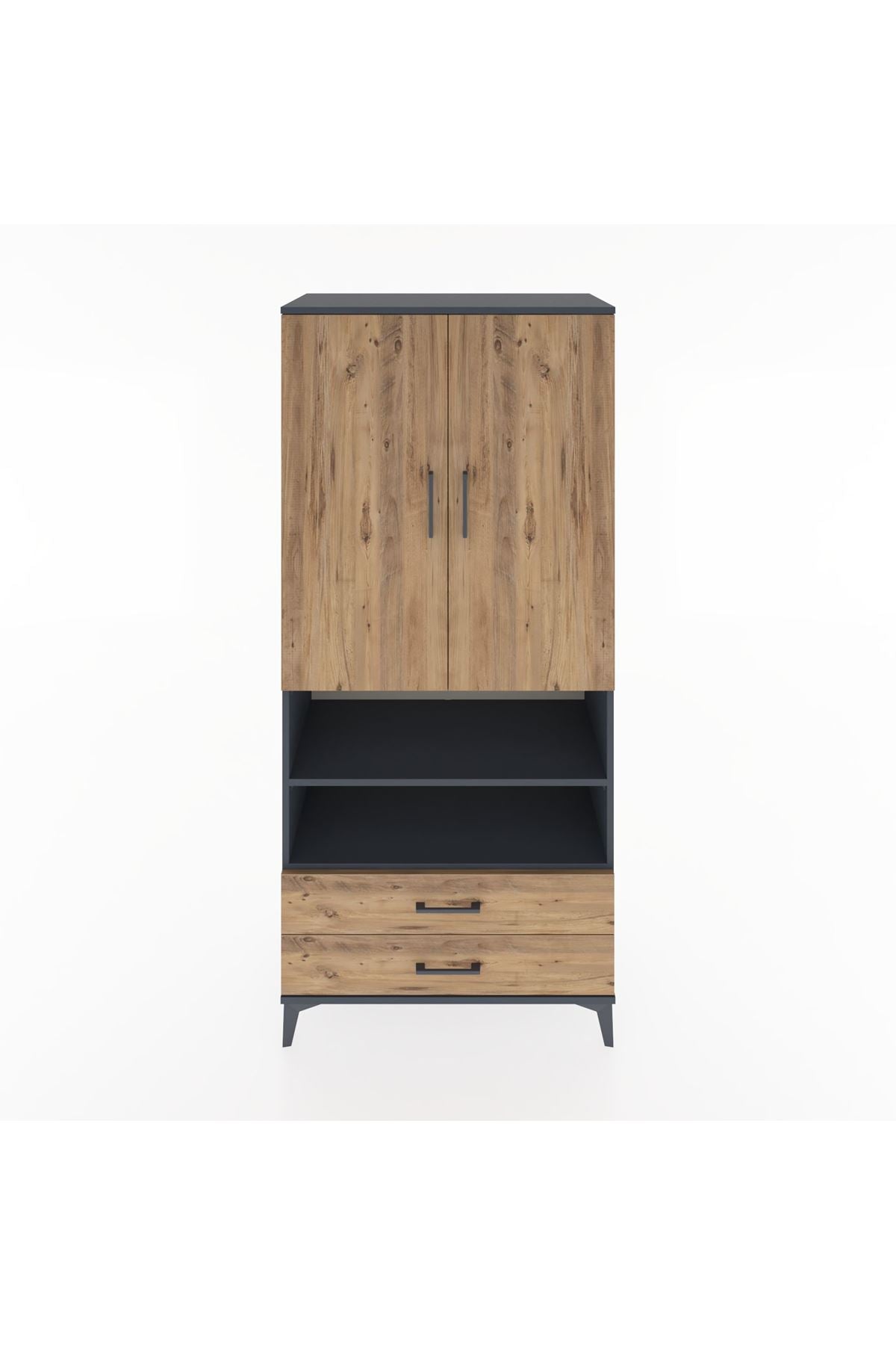 Hyperion Dolap 5 Raflı 2 Çekmeceli 2 Kapaklı 88x44x195 Antrasit-Çam