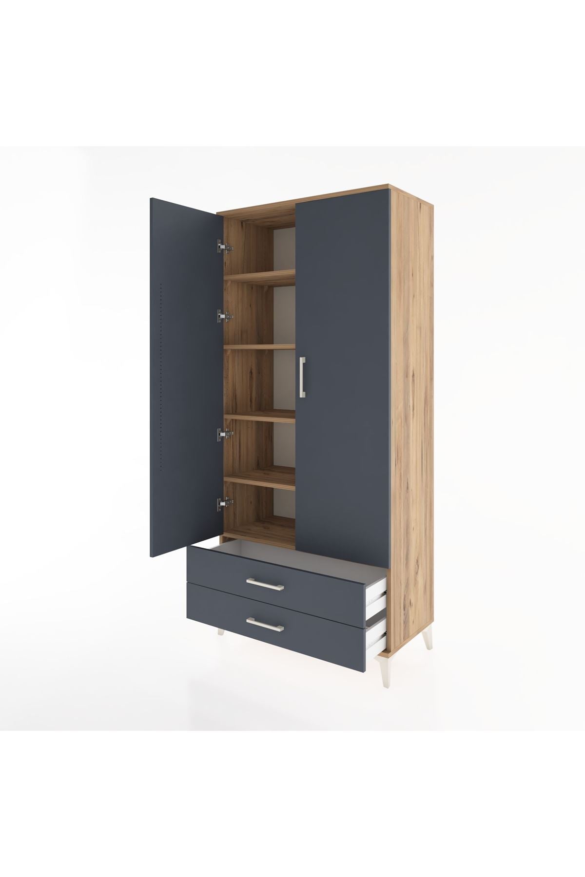 Hyperion Dolap 5 Raflı 2 Çekmeceli 2 Kapaklı 88x44x195 Çam-Antrasit