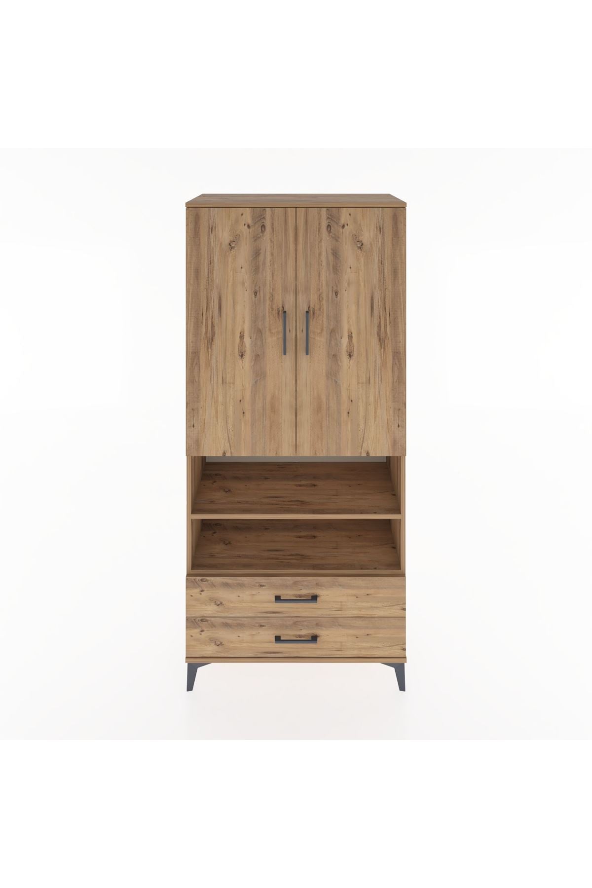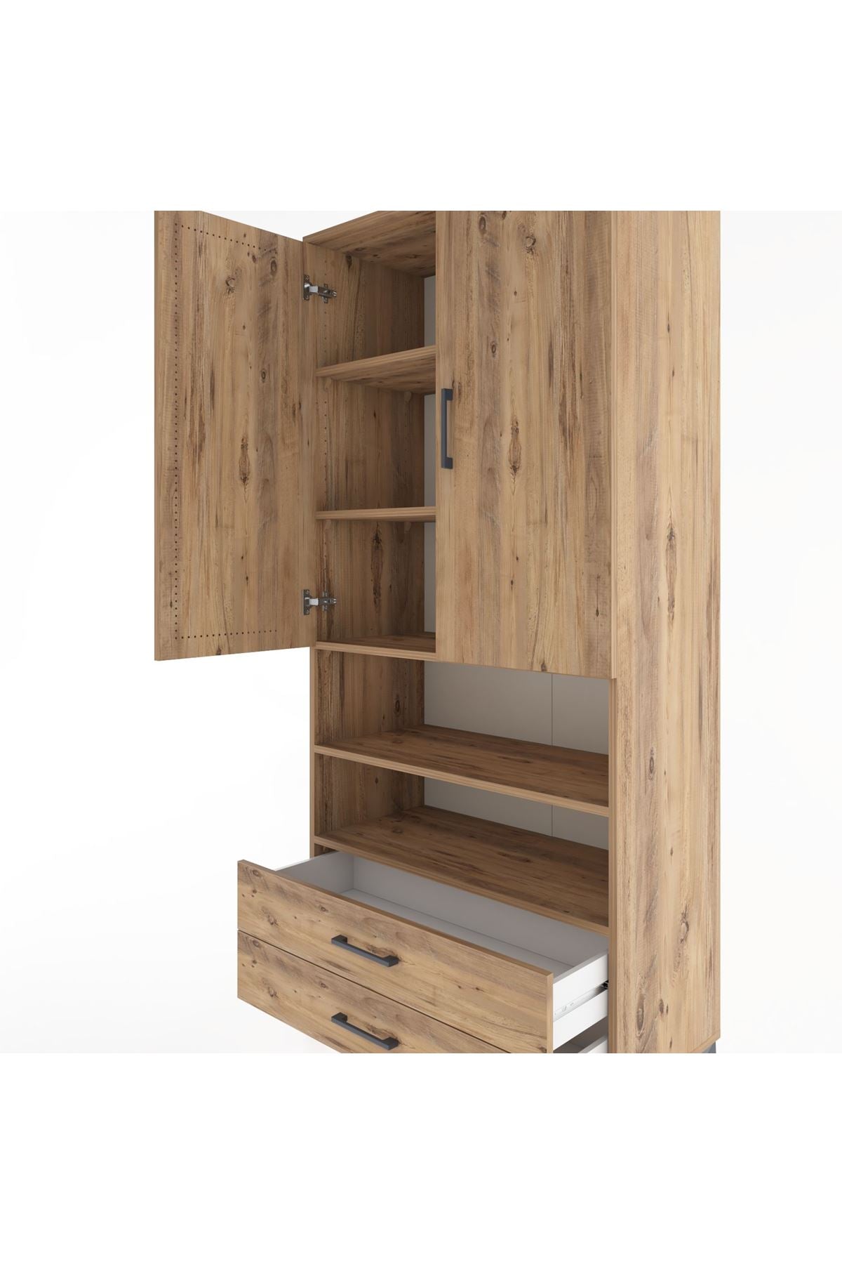 Hyperion Dolap 5 Raflı 2 Çekmeceli 2 Kapaklı 88x44x195 Çam-Çam