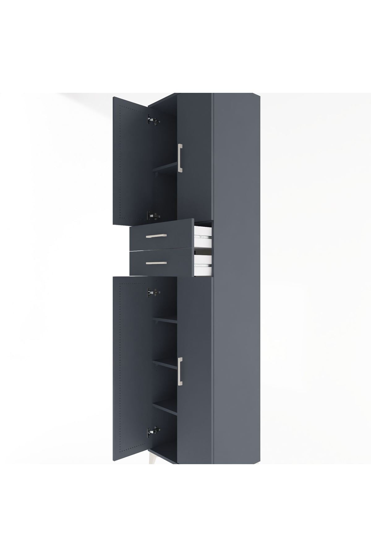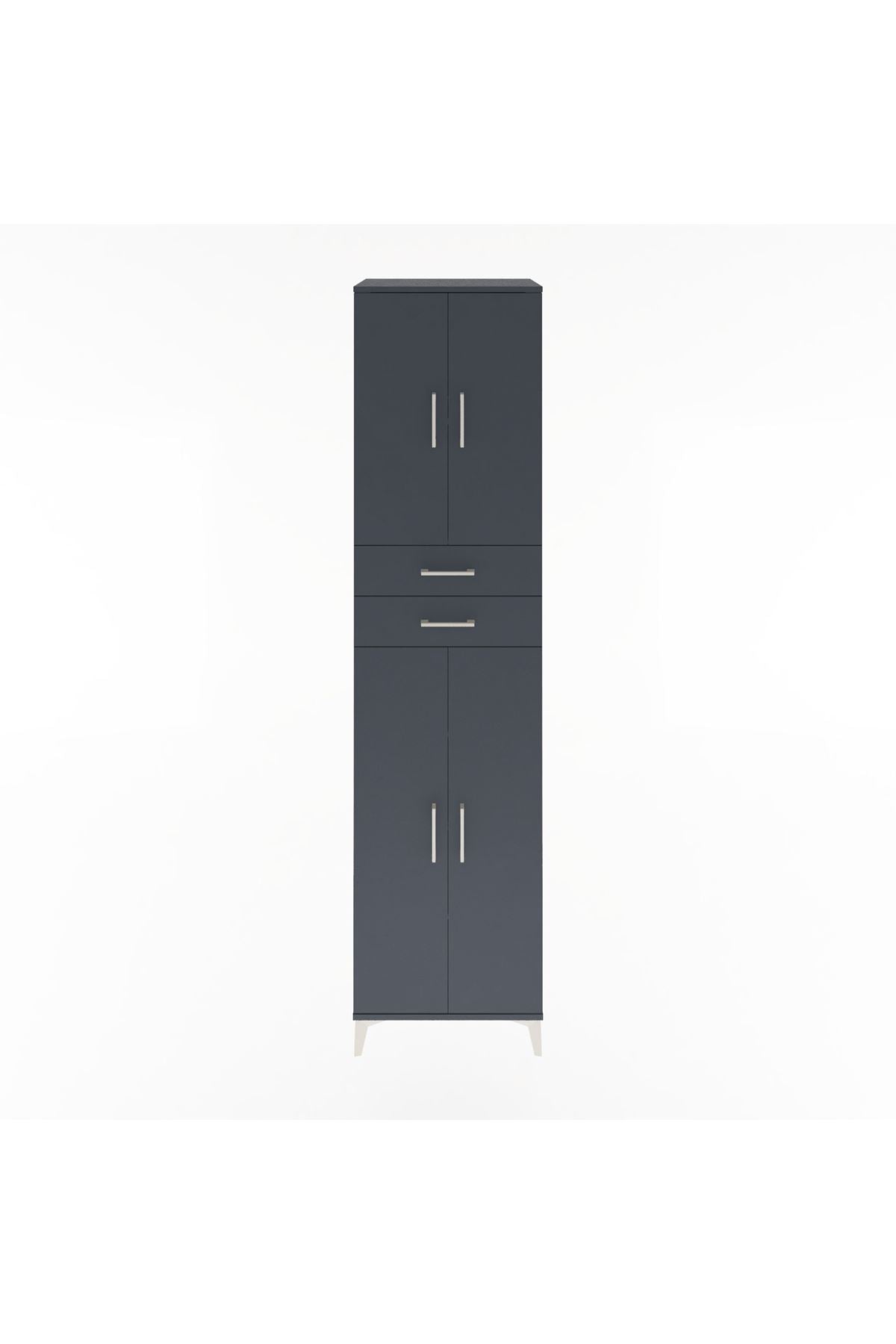 Hyperion Dolap 5 Raflı 2 Çekmeceli 4 Kapaklı 60x44x243 Antrasit-Antrasit