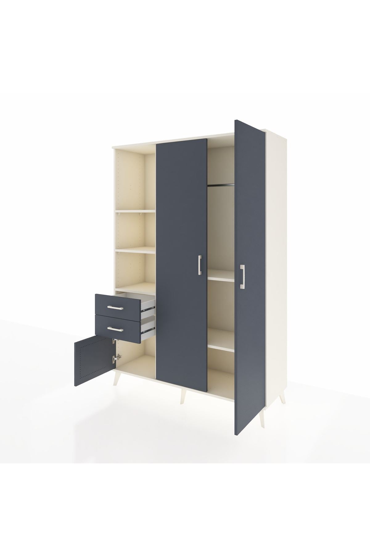 Geniş iç hacmi ve 5 raflı düzeni ile günlük eşyalarınızı, mevsimlik kıyafetleri veya bakım malzemelerini kolayca sınıflandırabilirsiniz. Raflar ayarlanabilir yapıda olduğundan farklı yüksekliğe sahip eşyalar için esnek depolama çözümleri sunar. İki çekmece standart olarak kullanıma sunulur; çekmece sayısı konfigüre edilebilir; isteğe bağlı ilave veya çıkarma seçenekleri ile ihtiyacınıza göre kişiselleştirilebilir. Tek askılı bölüm, mont ve uzun giysilerin düzenli asılmasını sağlayarak kırışıklığı azaltır. Sağlam yapısı sayesinde ağır eşyalar için güvenli destek sağlar.