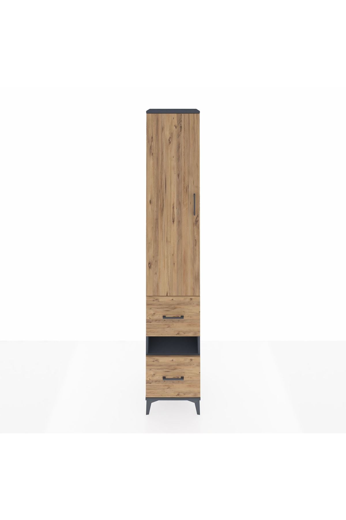 Hyperion Dolap 5 Raflı 2 Çekmeceli Tek Kapaklı 44x44x243 Antrasit-Çam