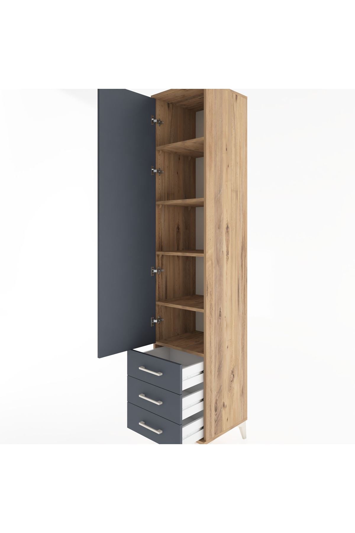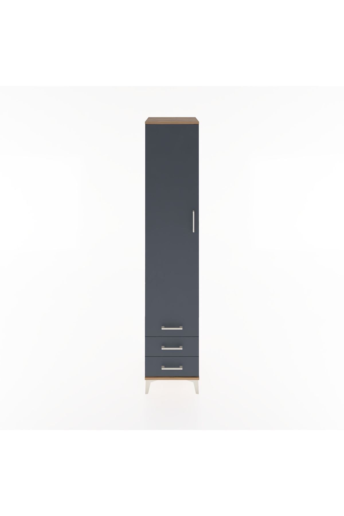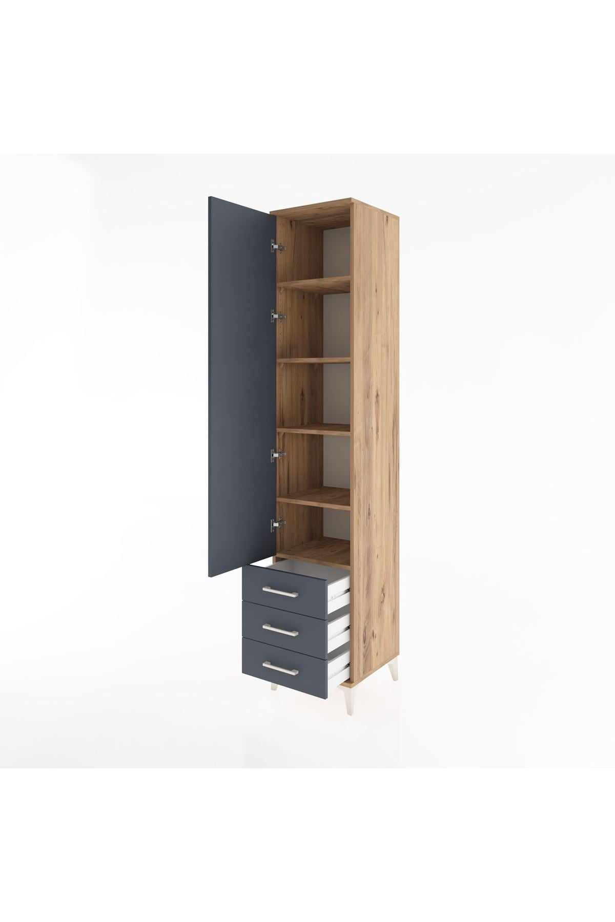 Hyperion Dolap 5 Raflı 3 Çekmeceli Tek Kapaklı 44x44x221 Çam-Antrasit