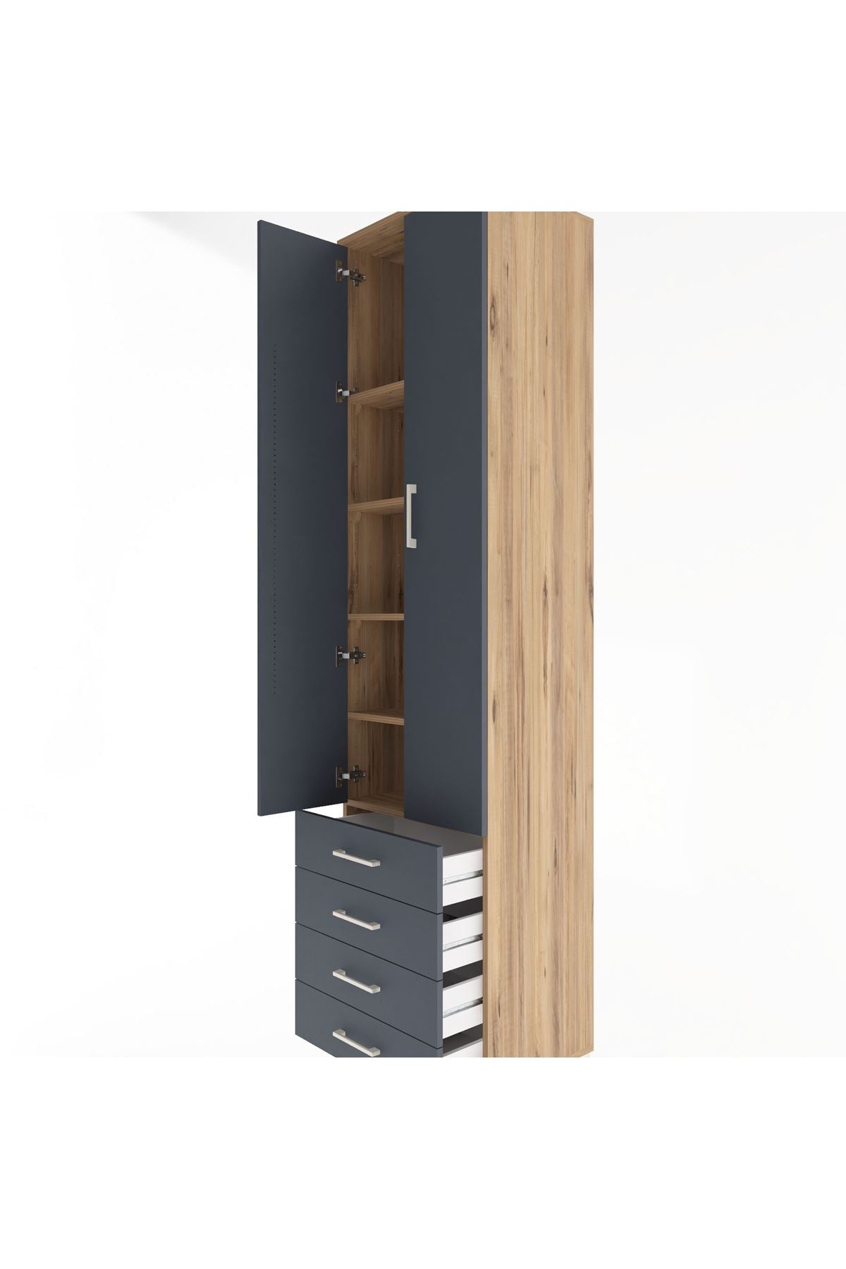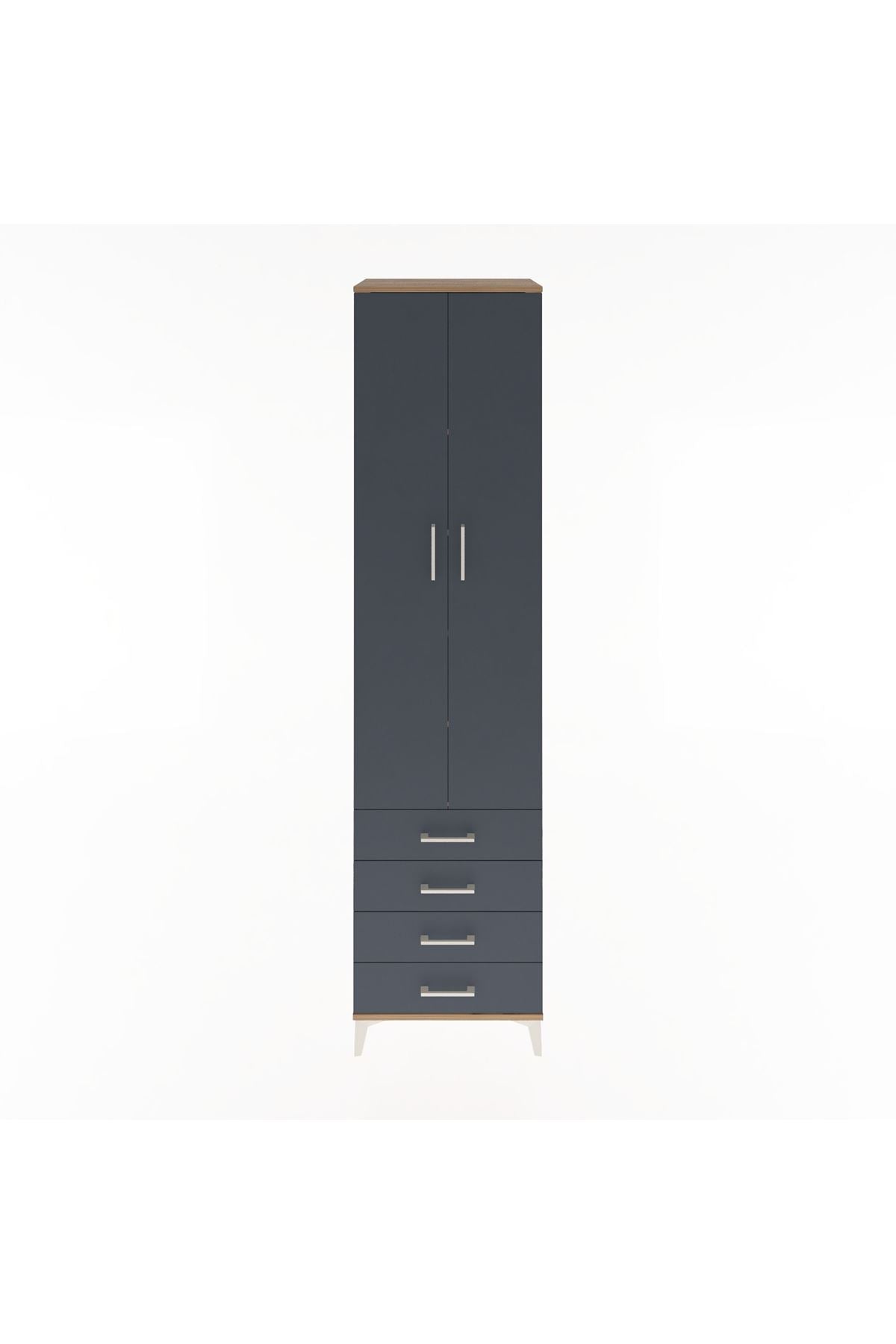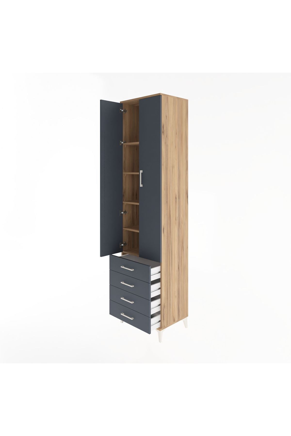 Hyperion Dolap 5 Raflı 4 Çekmeceli 2 Kapaklı 60x44x243 Çam-Antrasit