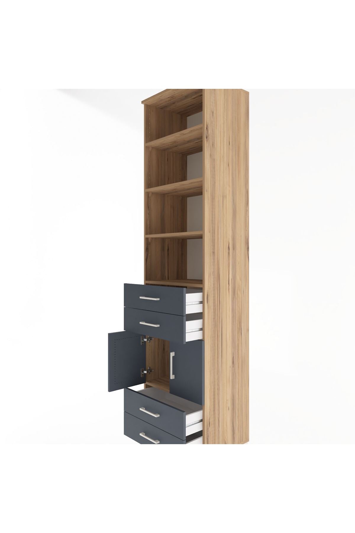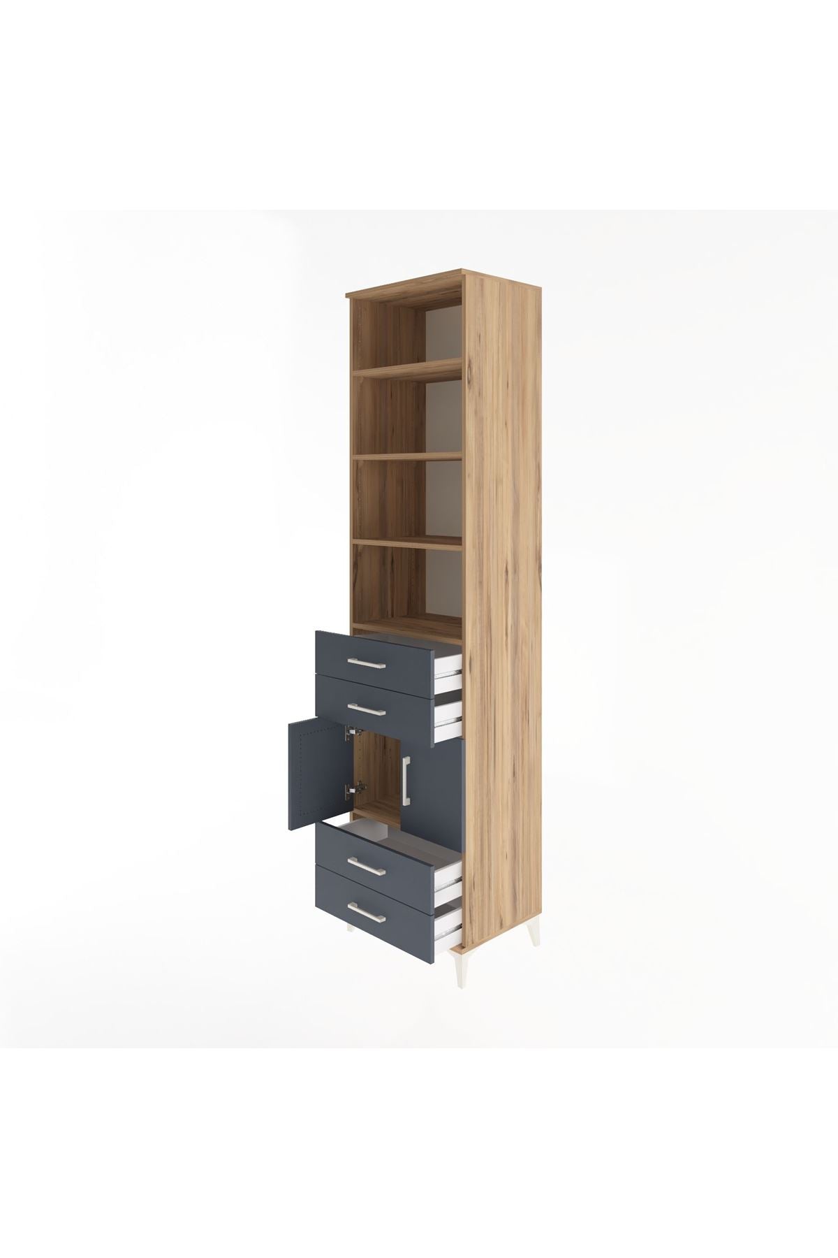 Hyperion Dolap 5 Raflı 4 Çekmeceli 2 Kapaklı 60x44x243 Çam-Antrasit