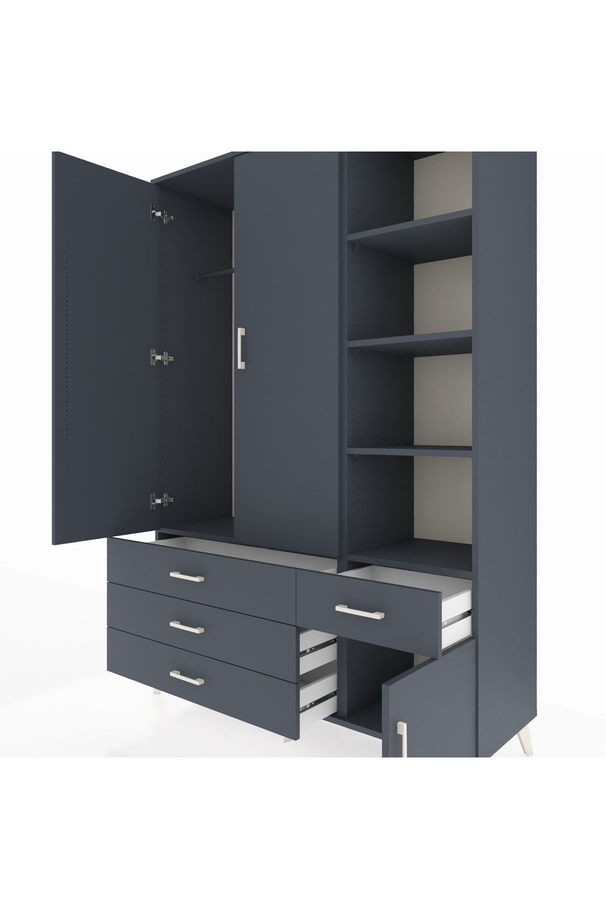 Hyperion Dolap 5 Raflı 4 Çekmeceli Tek Askılı 132x44x195 Antrasit-Antrasit/Antrasit