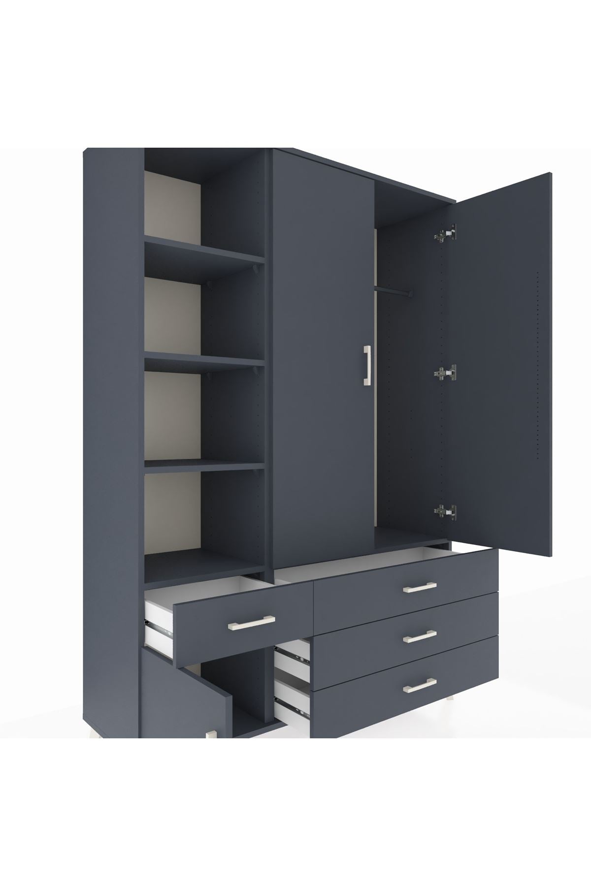 Hyperion Dolap 5 Raflı 4 Çekmeceli Tek Askılı 132x44x195 Antrasit-Antrasit/Antrasit