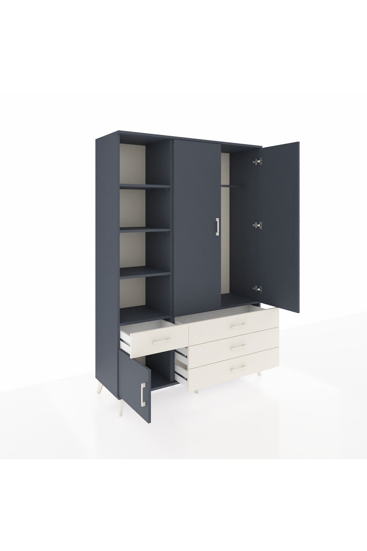 Oyuncak, kıyafet ve okul malzemelerini sınıflandırmak için ideal. Açık raflar çocukların kendi eşyalarına kolay erişimini sağlar; kapaklı bölmeler ve çekmeceler değerli eşyaların düzenli saklanmasına yardımcı olur. Sağlam yapısı ve yuvarlatılmış köşe tasarımına uygun montajla güvenli kullanım sunar.