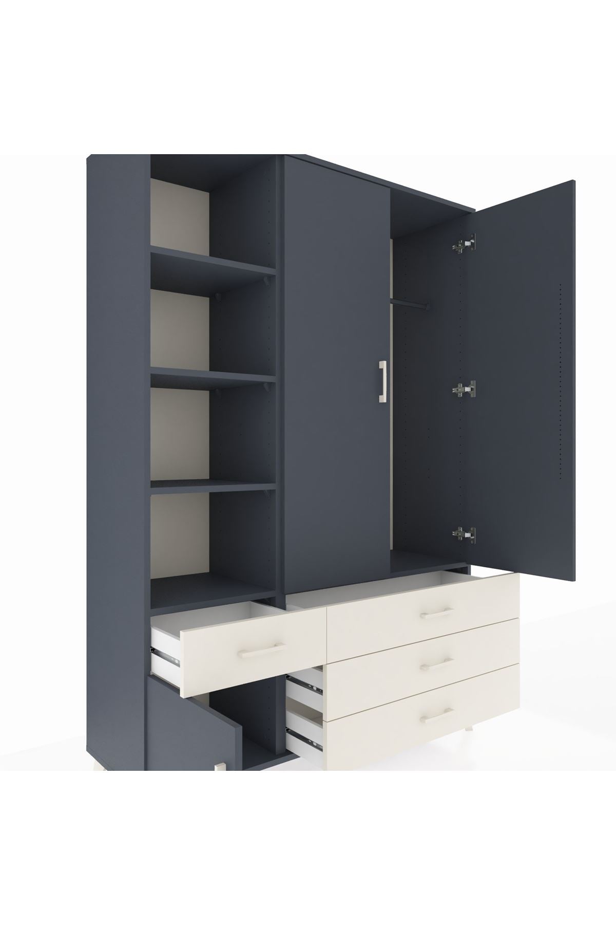 Hyperion Dolap 5 Raflı 4 Çekmeceli Tek Askılı 132x44x195 Antrasit-Antrasit/Aytaşı