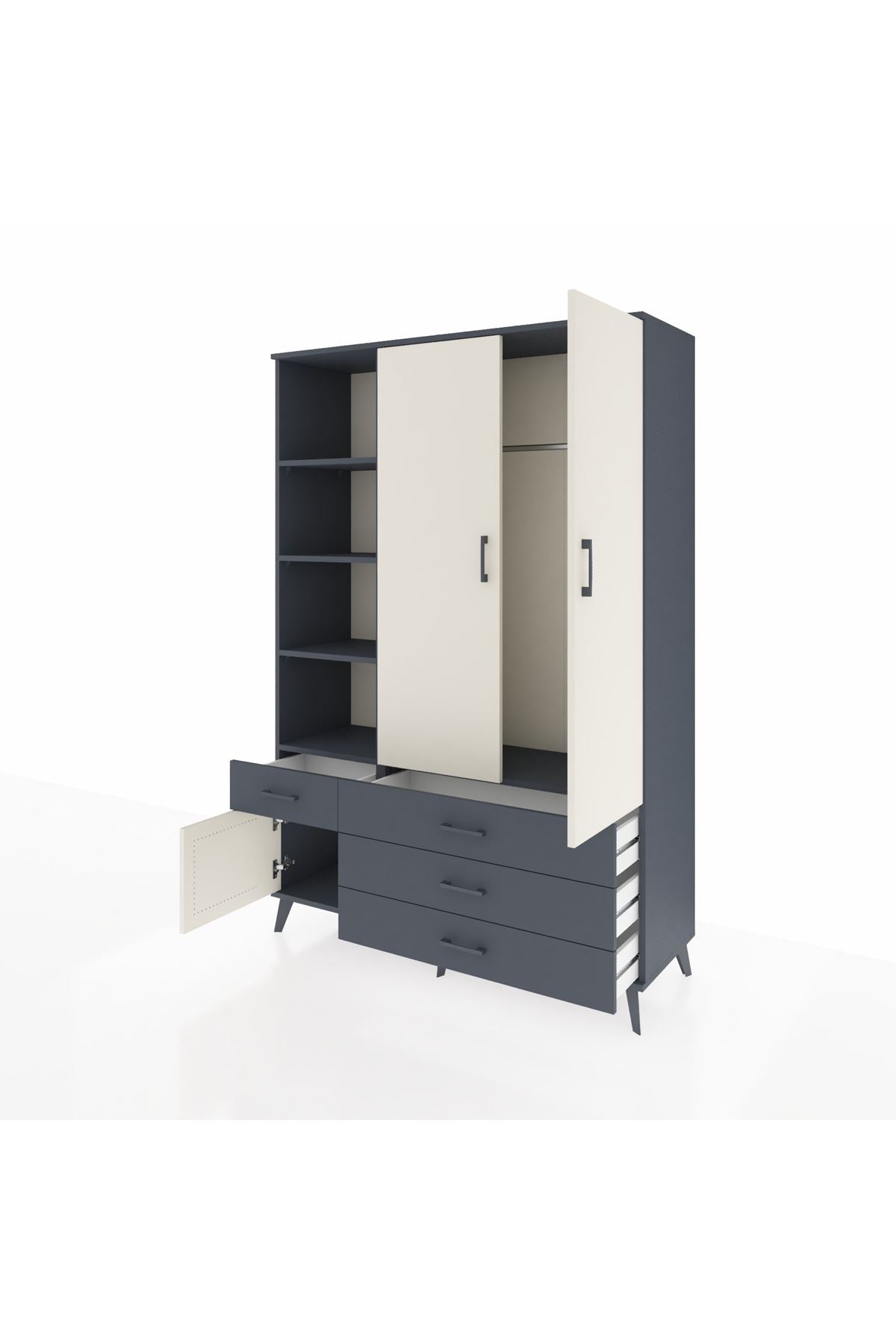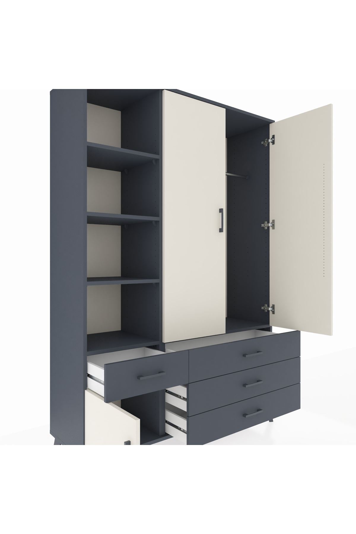 Hyperion Dolap 5 Raflı 4 Çekmeceli Tek Askılı 132x44x195 Antrasit-Aytaşı/Antrasit – Düzen ve Şıklık Bir Arada