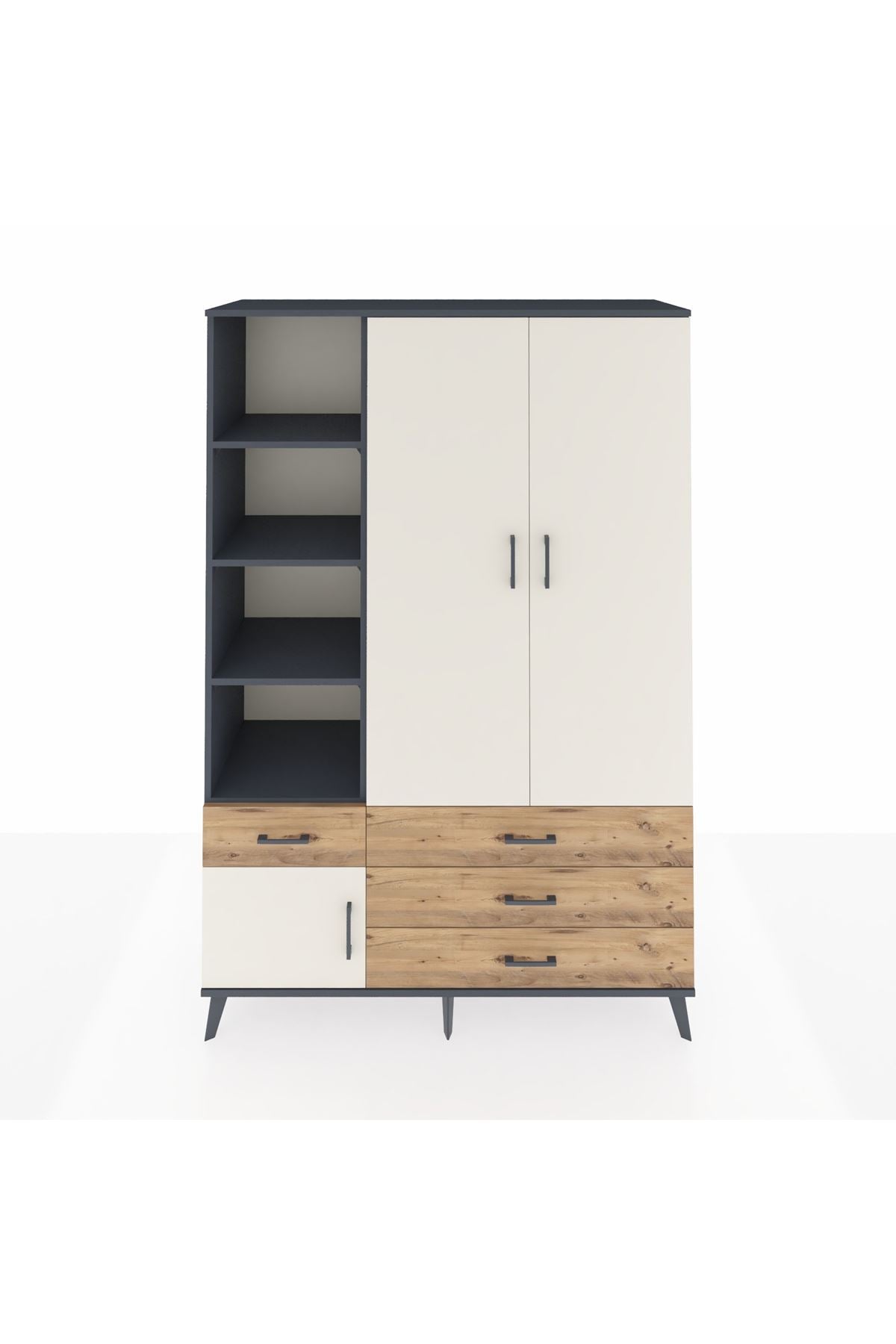 Hyperion Dolap 5 Raflı 4 Çekmeceli Tek Askılı 132x44x195 Antrasit-Aytaşı/Çam