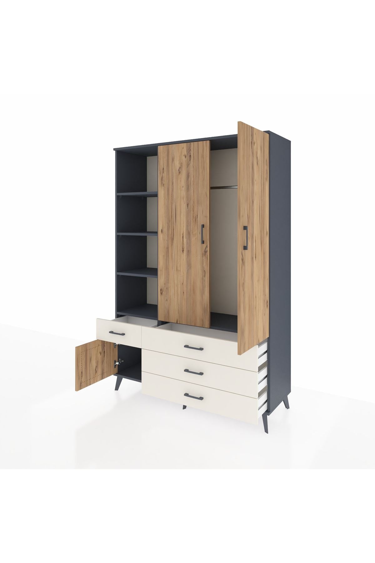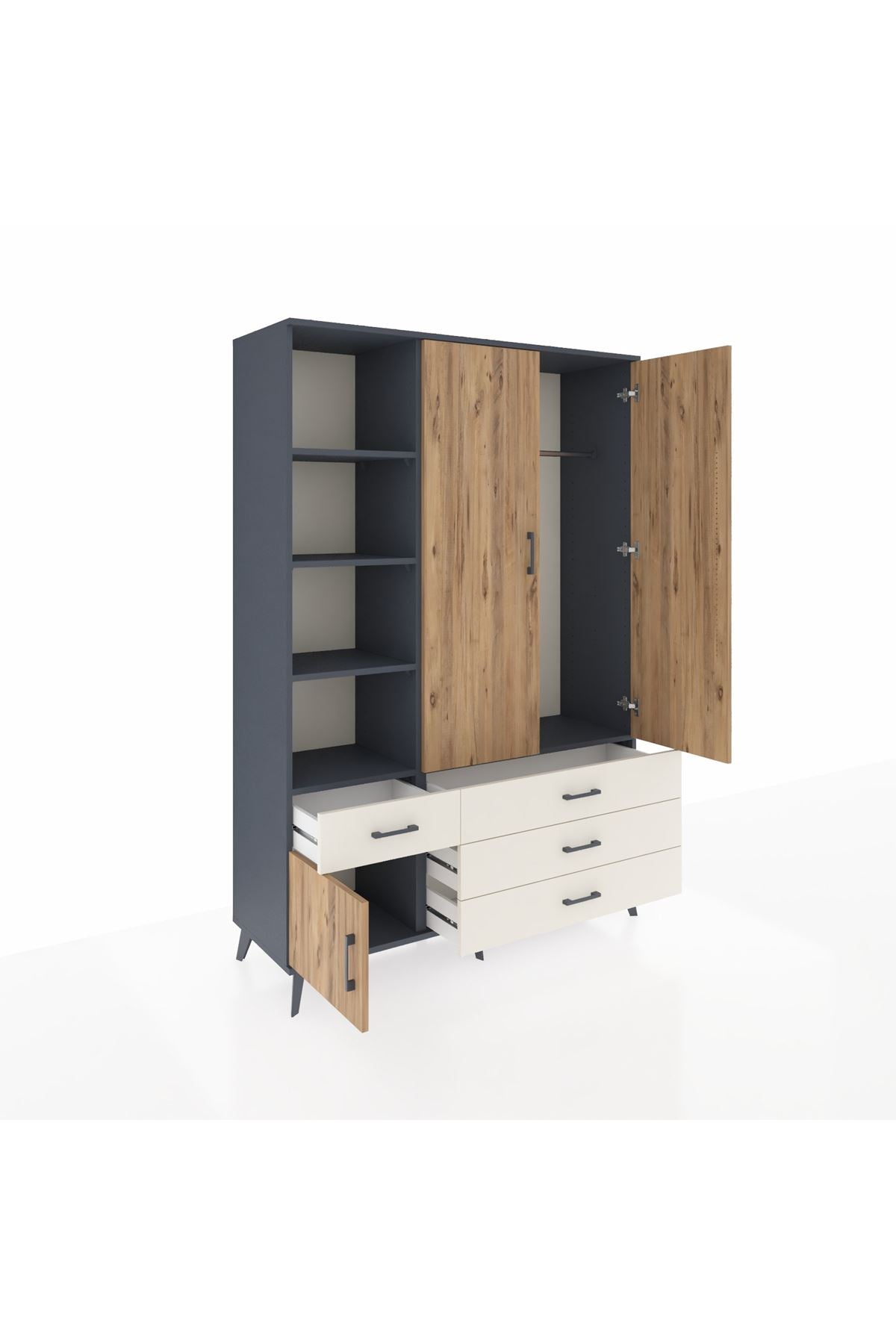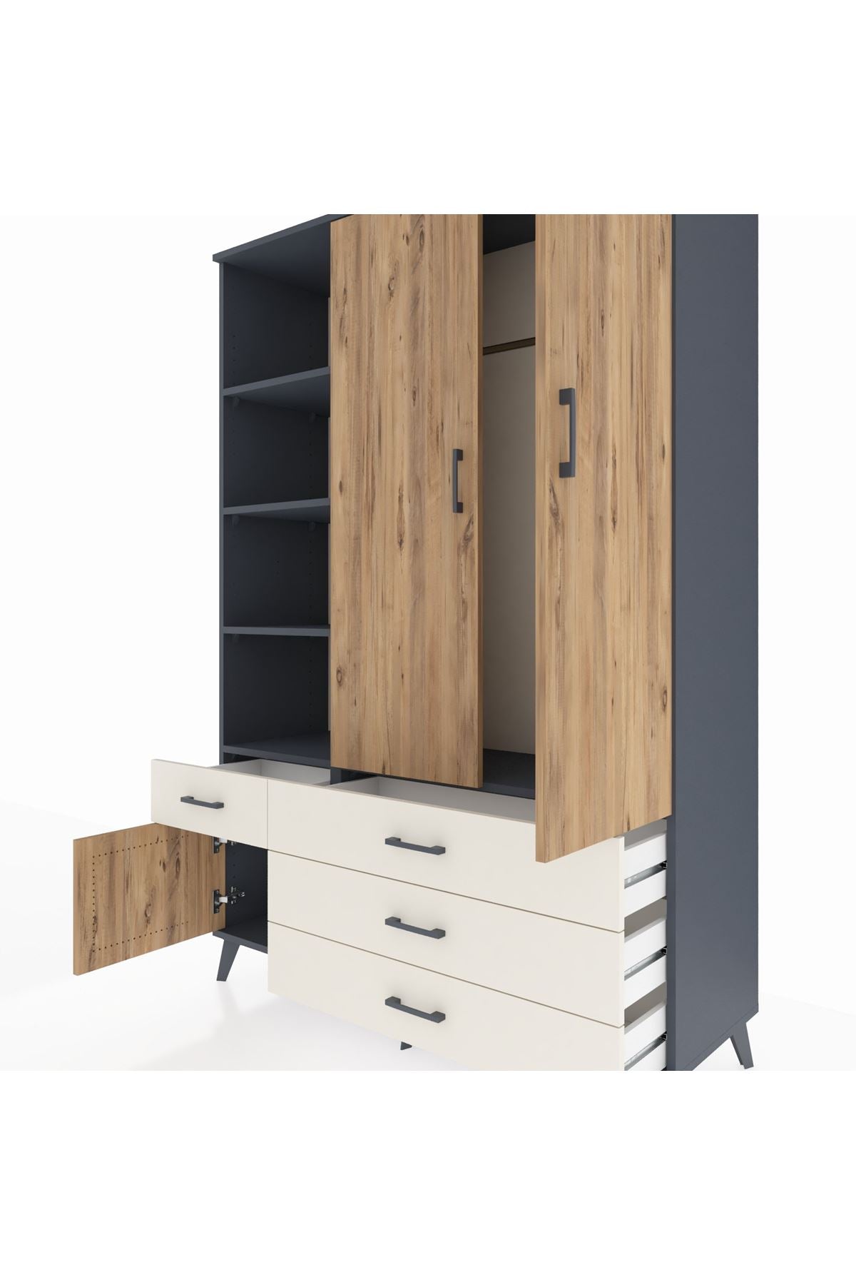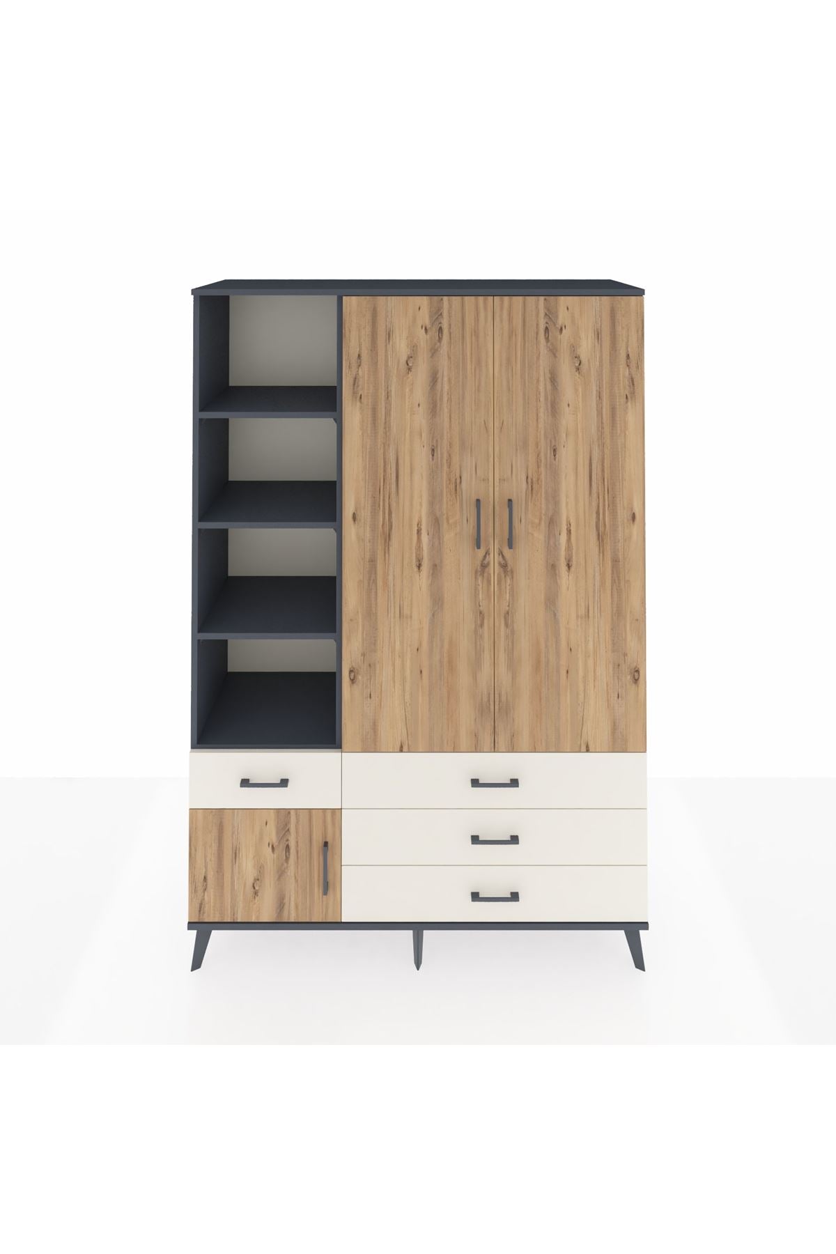 Hyperion Dolap 5 Raflı 4 Çekmeceli Tek Askılı 132x44x195 Antrasit-Çam/Aytaşı