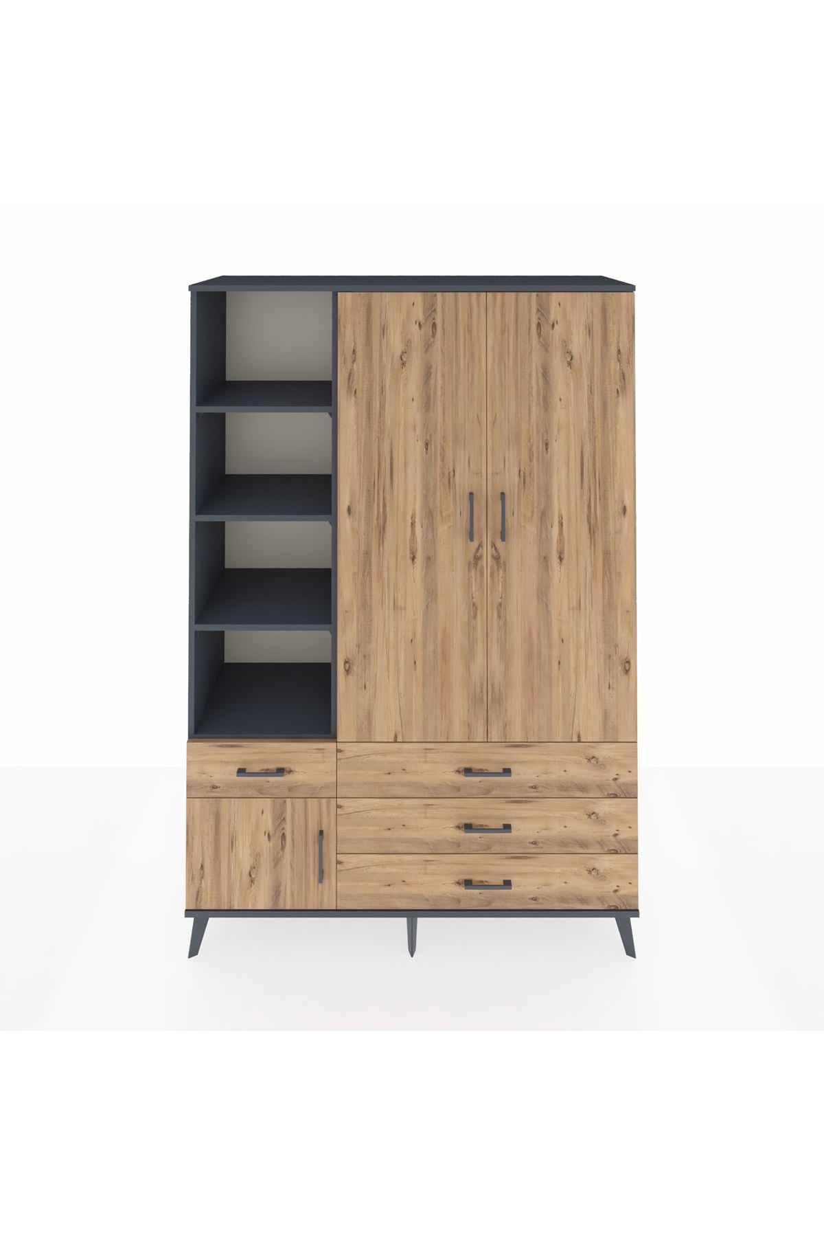 Hyperion Dolap 5 Raflı 4 Çekmeceli Tek Askılı 132x44x195 Antrasit-Çam/Çam – Düzen ve Şıklığın Buluştuğu Seçim