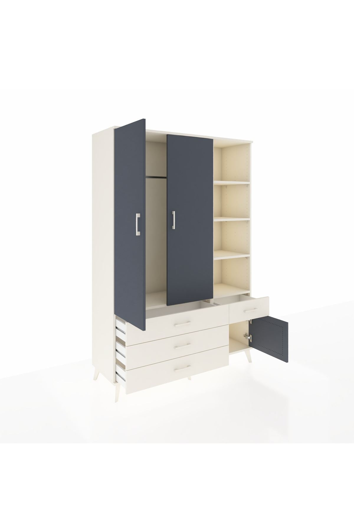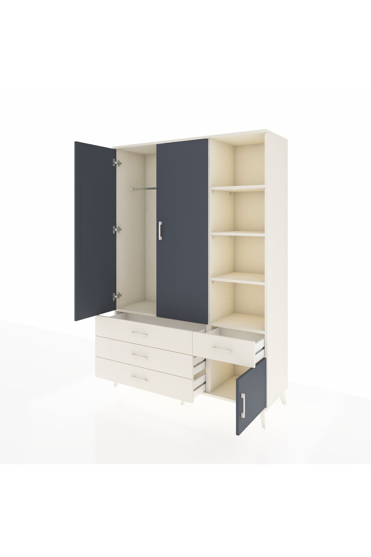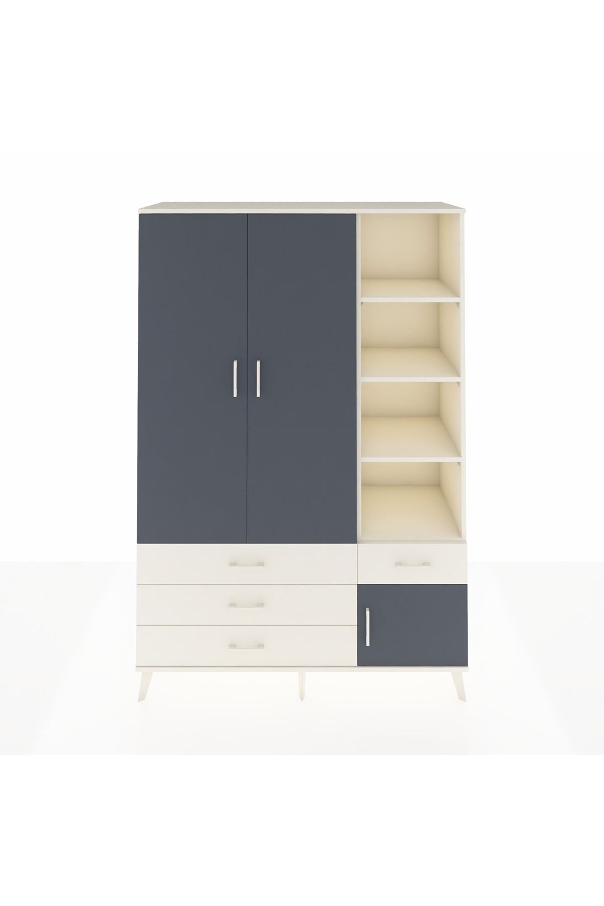 Hyperion Dolap 5 Raflı 4 Çekmeceli Tek Askılı 132x44x195 Aytaşı-Antrasit/Aytaşı