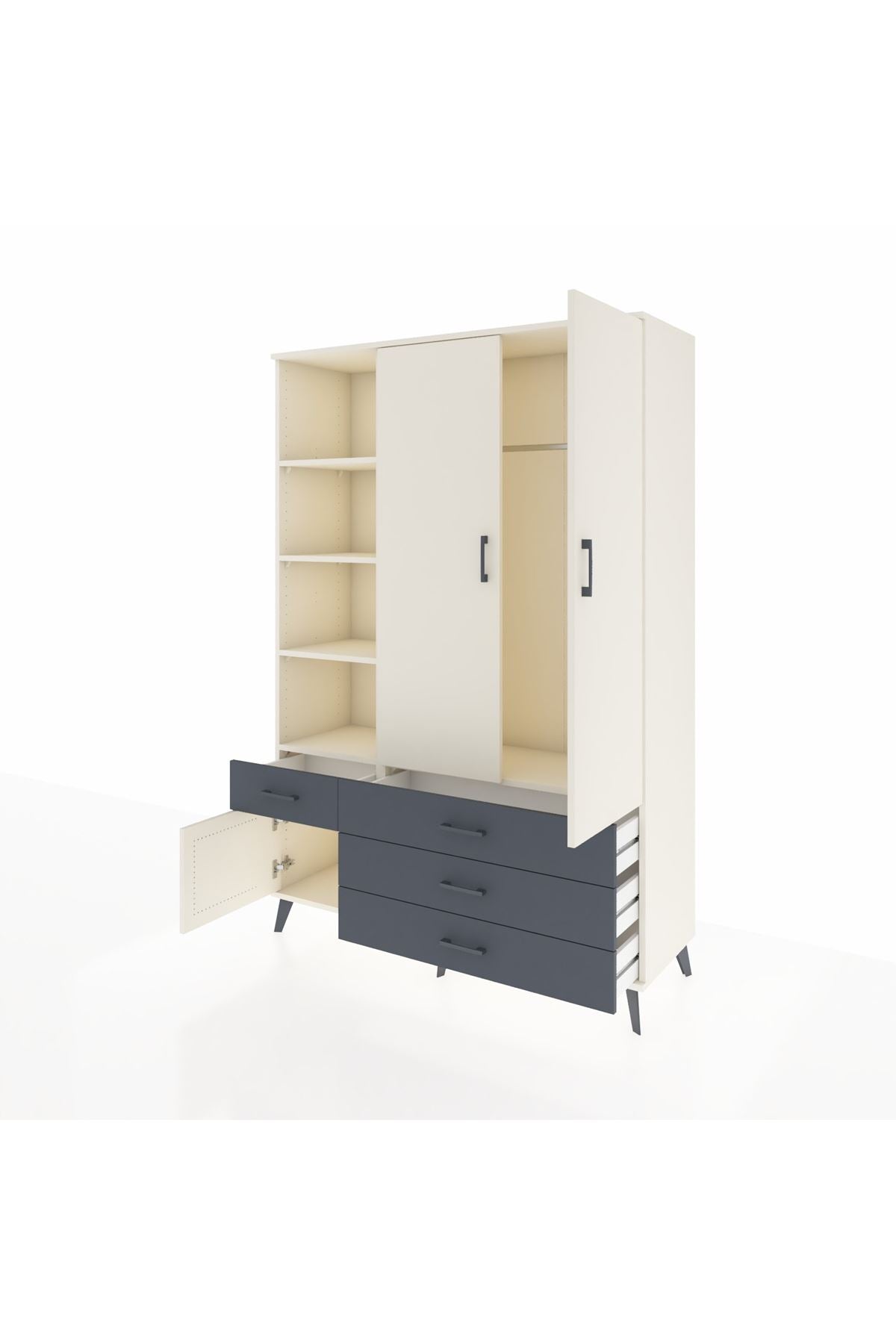 Hyperion Dolap 5 Raflı 4 Çekmeceli Tek Askılı 132x44x195 Aytaşı-Aytaşı/Antrasit – Fonksiyonel ve Şık Saklama