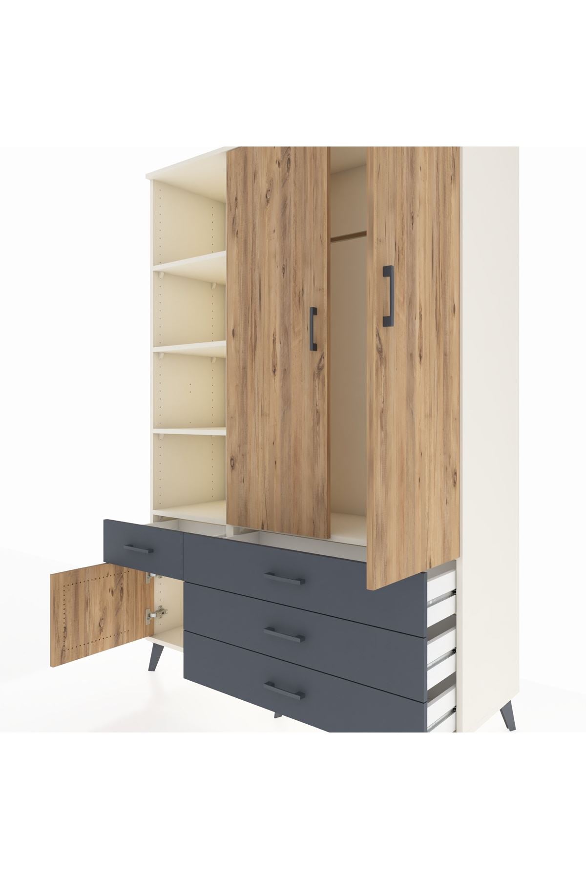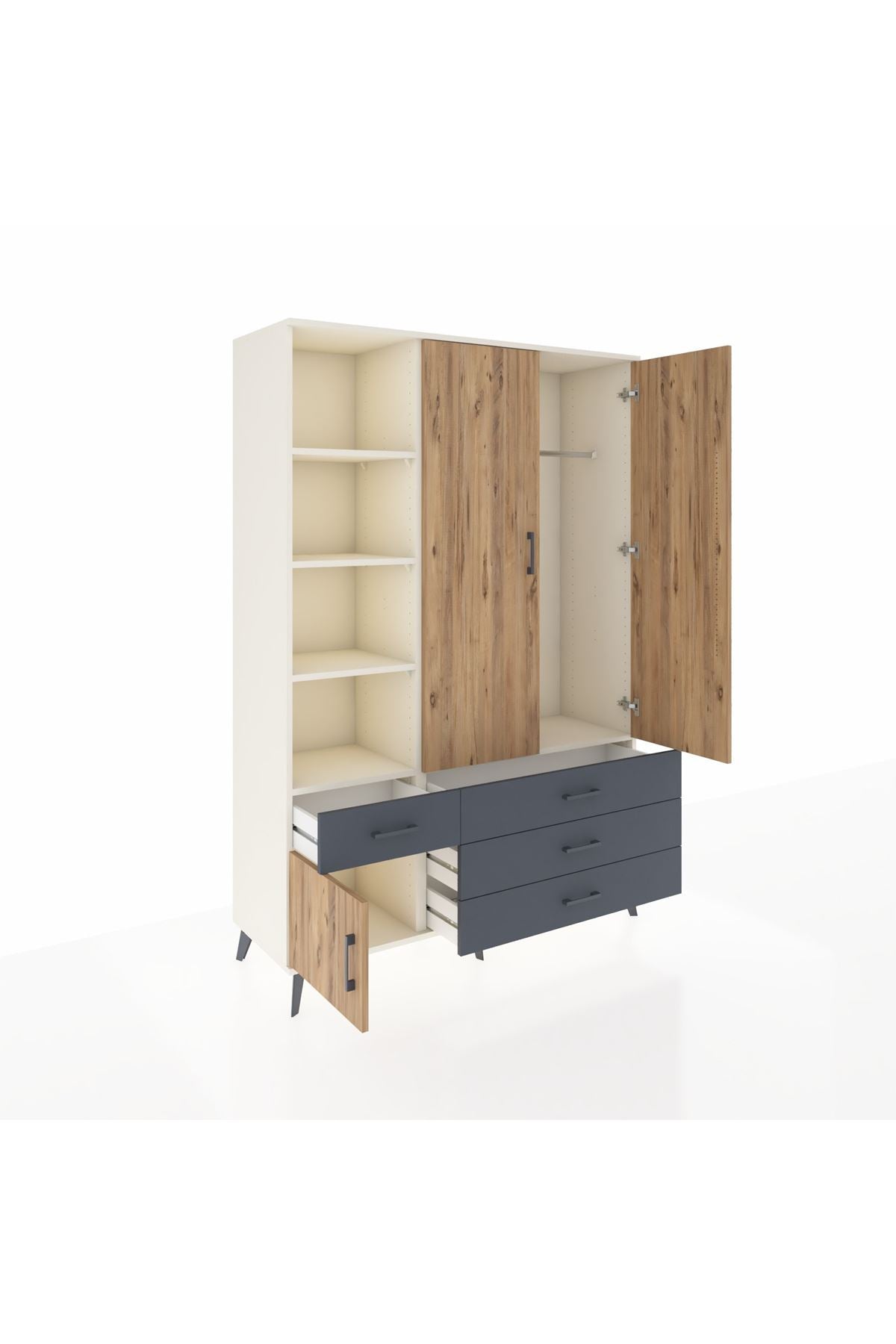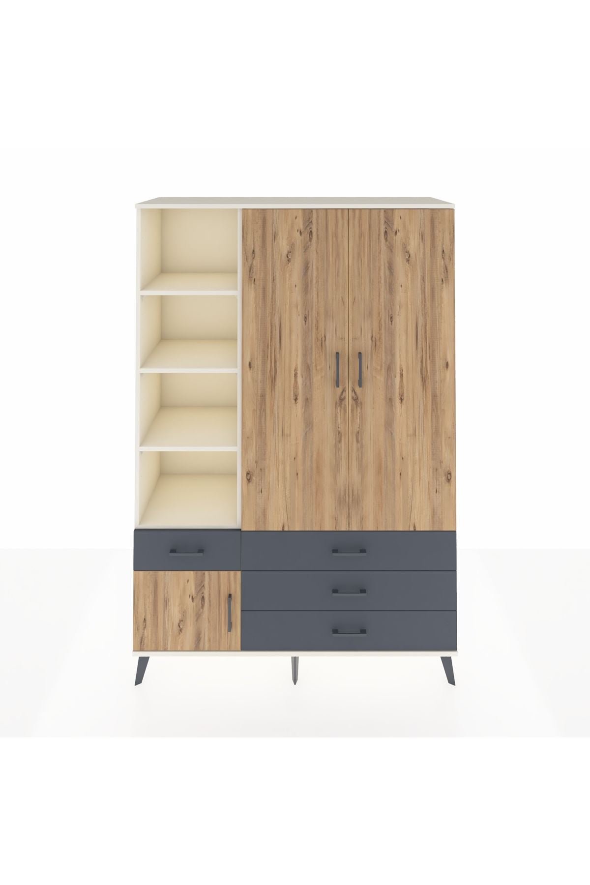 Hyperion Dolap 5 Raflı 4 Çekmeceli Tek Askılı 132x44x195 Aytaşı-Çam/Antrasit
