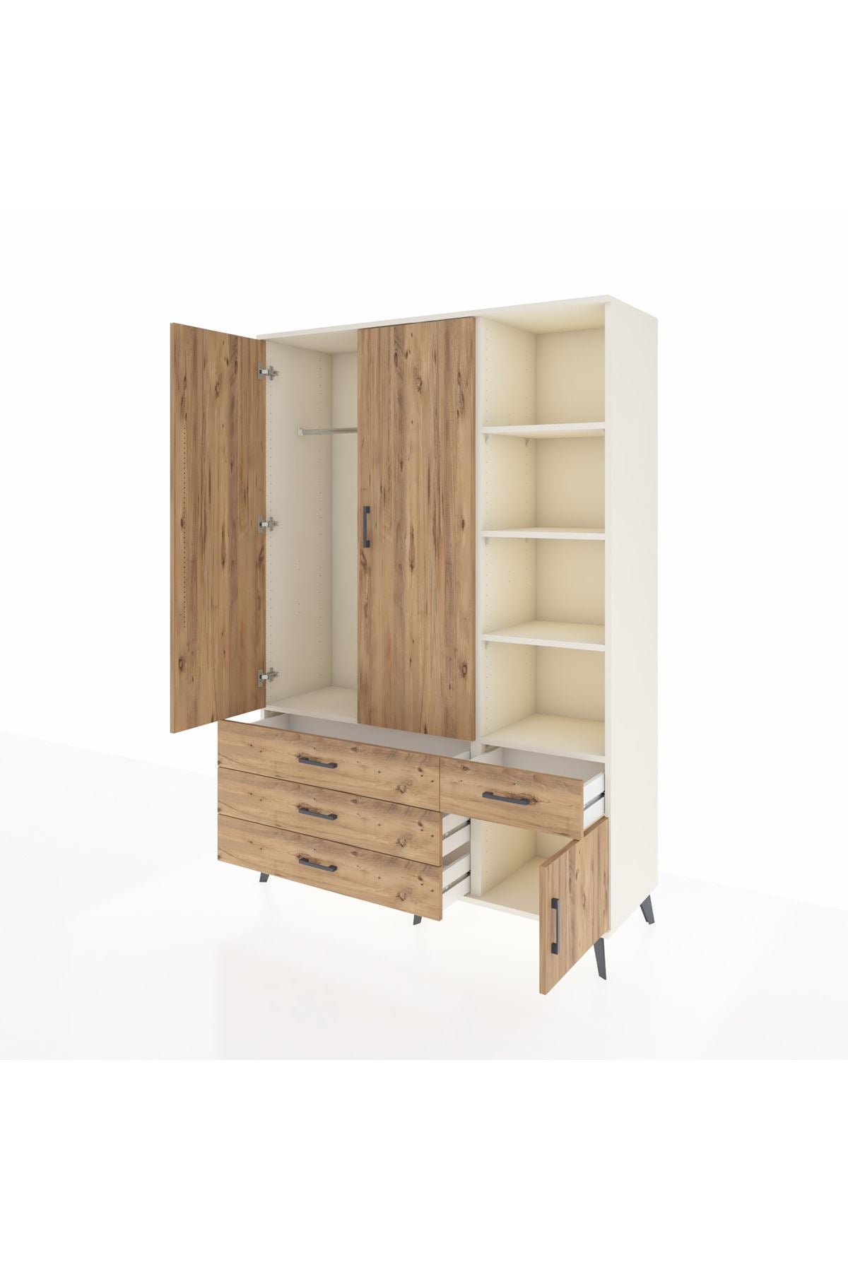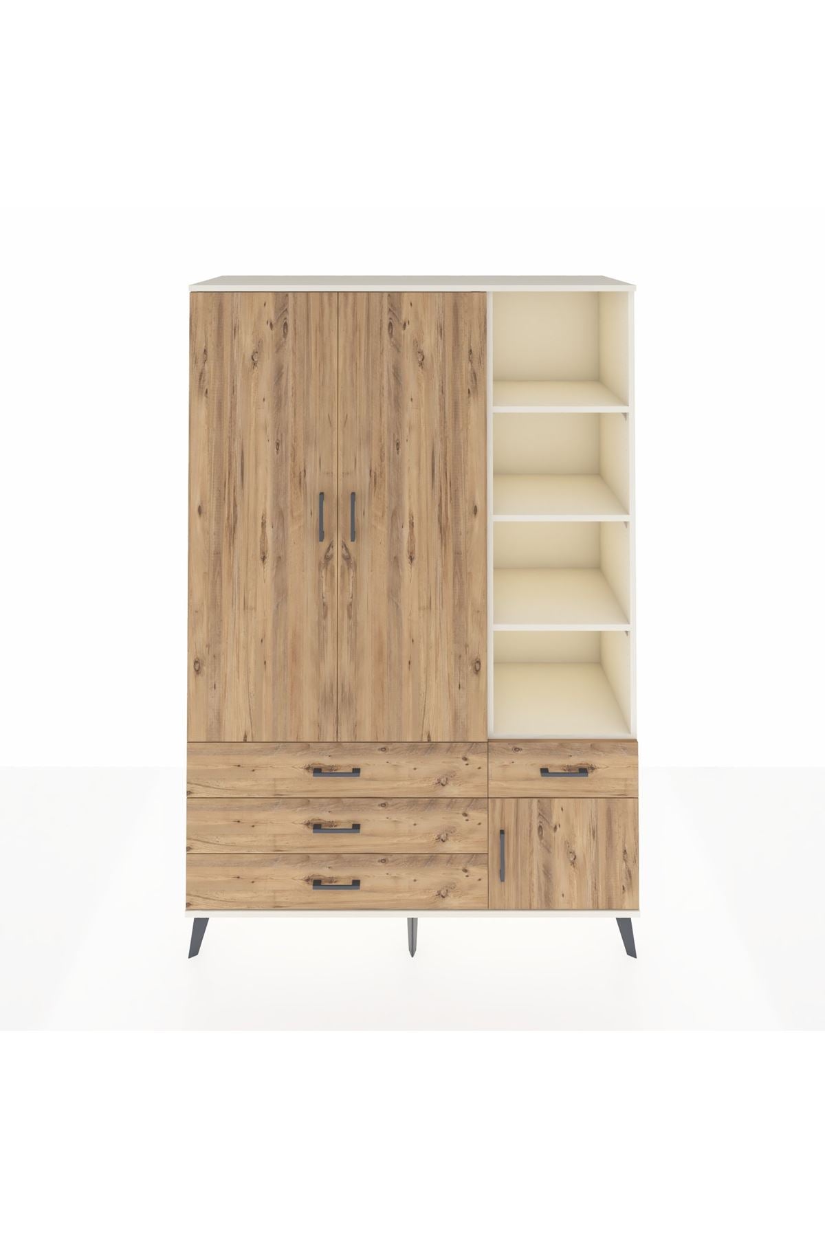Hyperion Dolap 5 Raflı 4 Çekmeceli Tek Askılı 132x44x195 Aytaşı-Çam/Çam