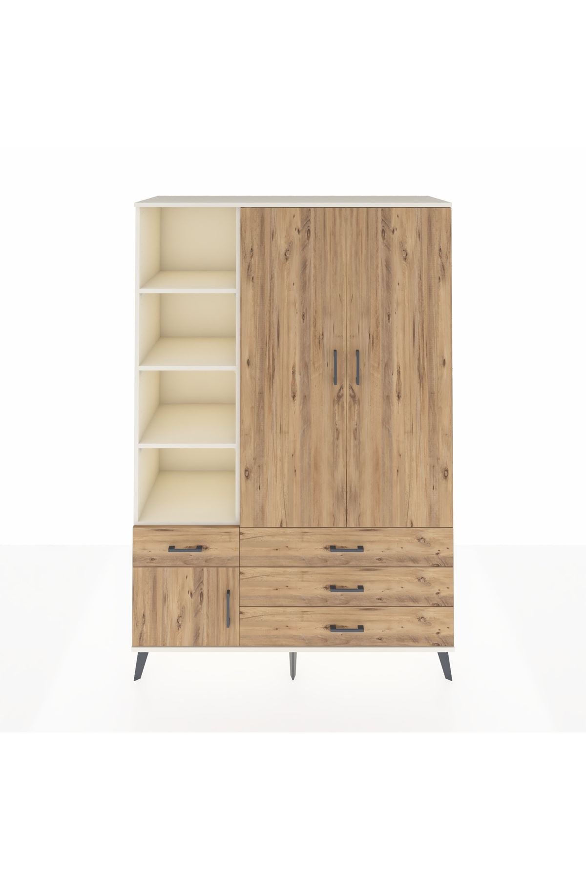 Hyperion Dolap 5 Raflı 4 Çekmeceli Tek Askılı 132x44x195 Aytaşı-Çam/Çam