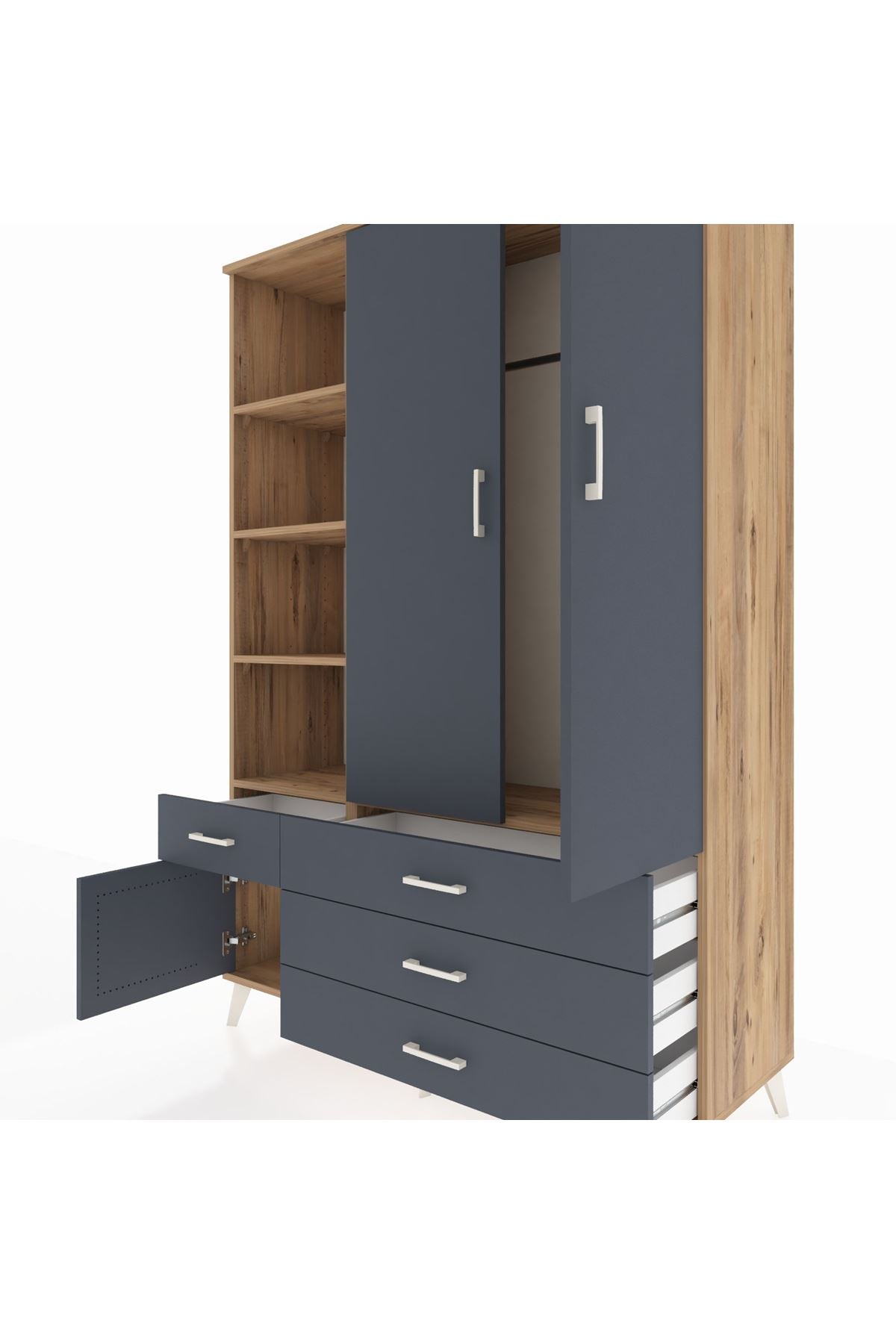 Hyperion Dolap 5 Raflı 4 Çekmeceli Tek Askılı 132x44x195 Çam-Antrasit/Antrasit