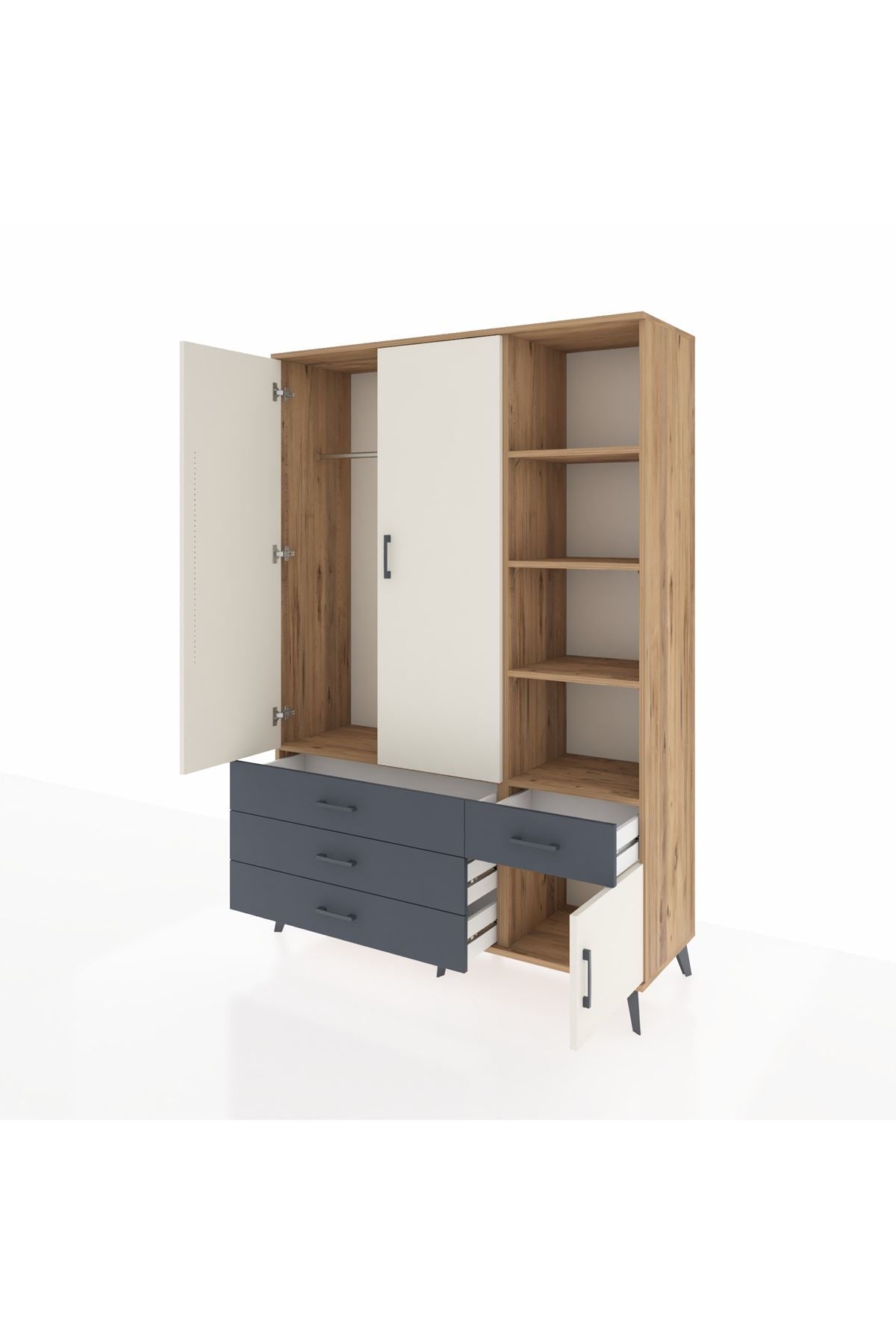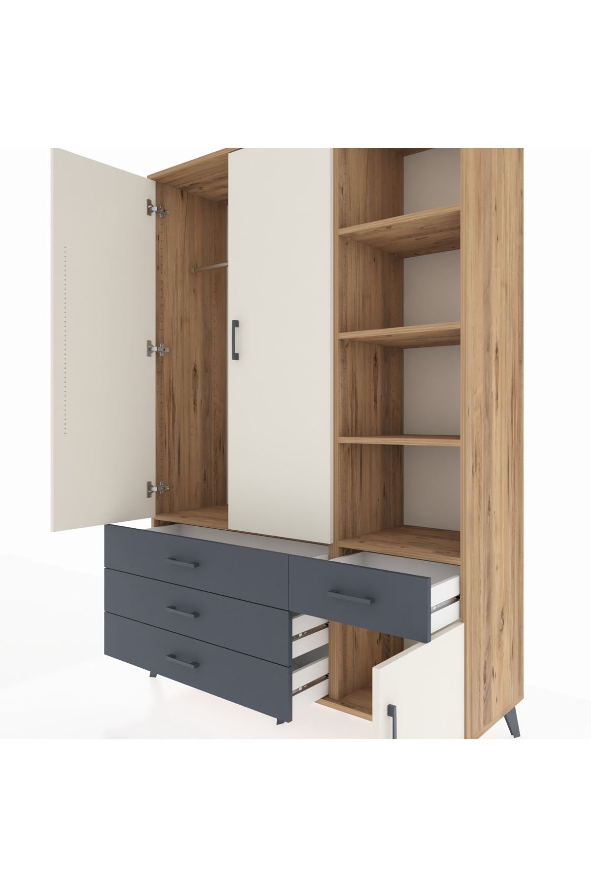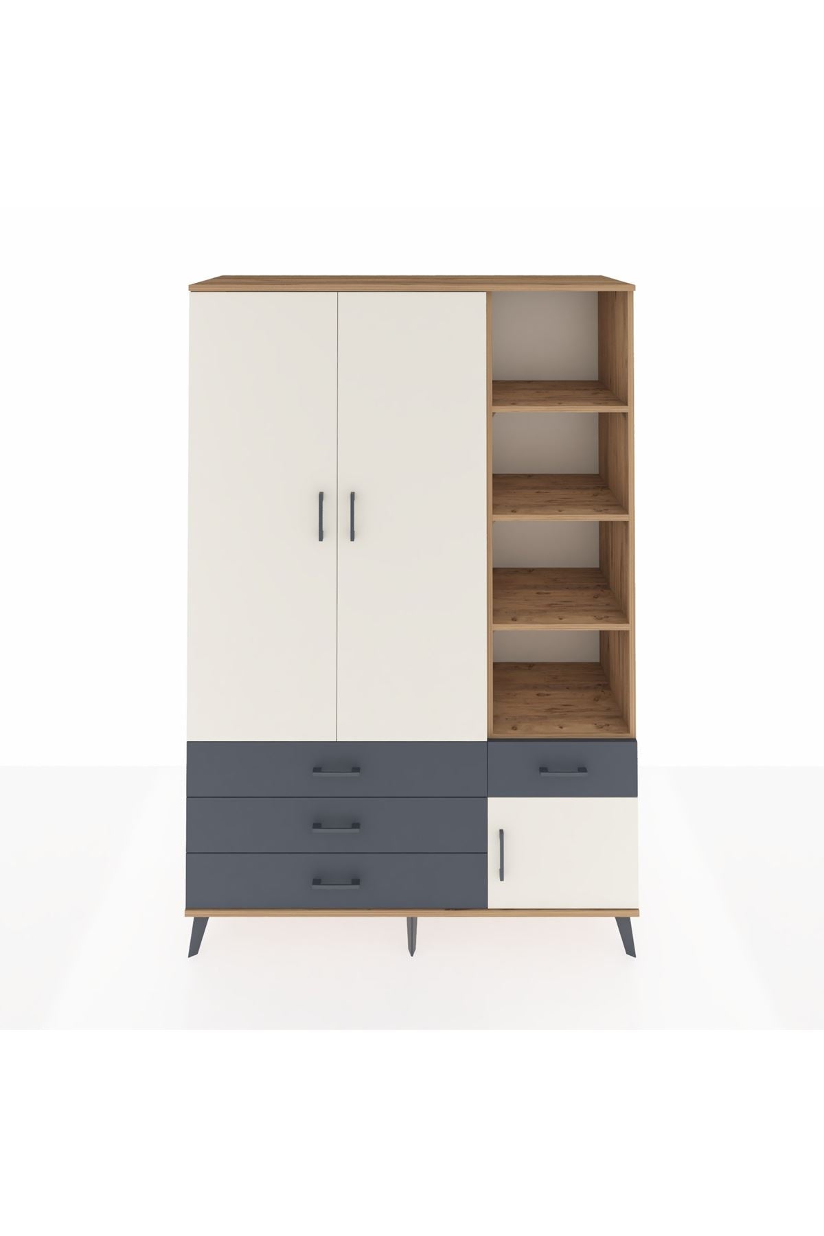 Hyperion Dolap 5 Raflı 4 Çekmeceli Tek Askılı 132x44x195 Çam-Aytaşı/Antrasit