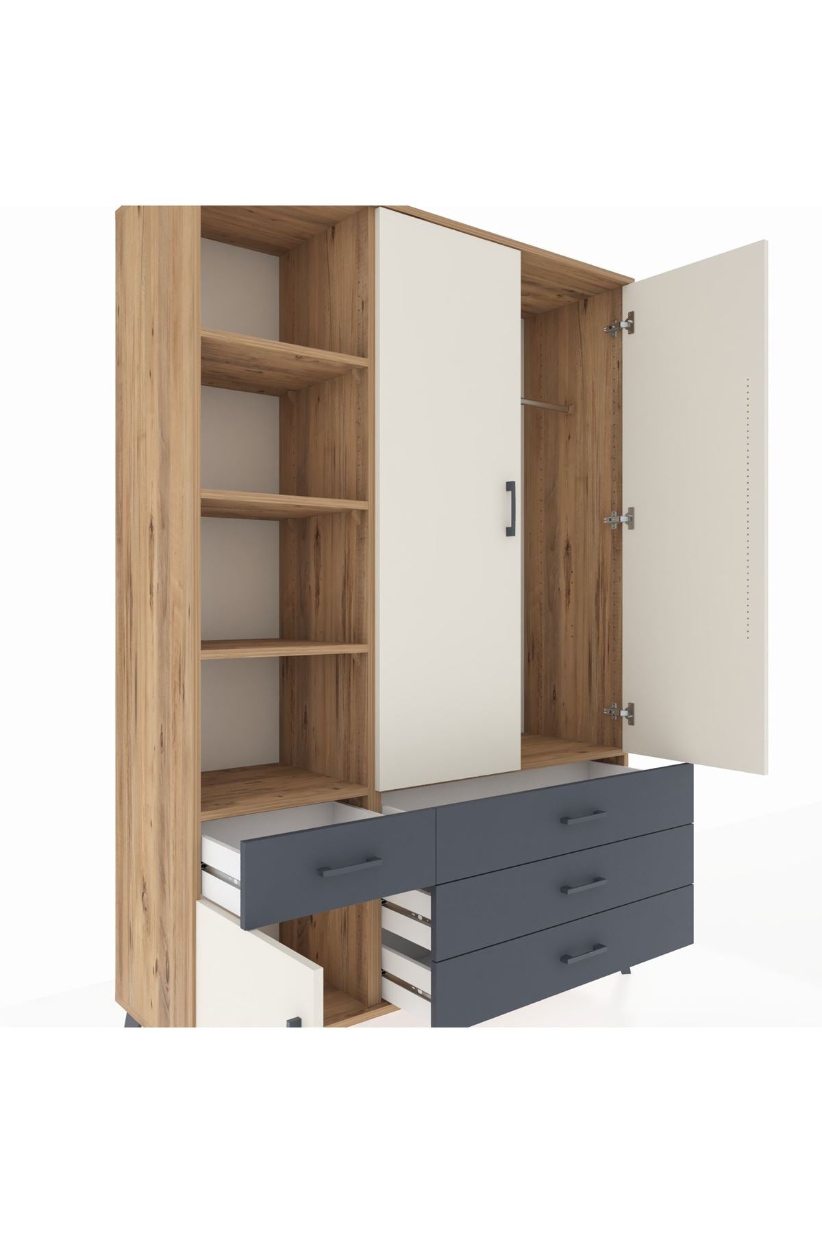 Hyperion Dolap 5 Raflı 4 Çekmeceli Tek Askılı 132x44x195 Çam-Aytaşı/Antrasit