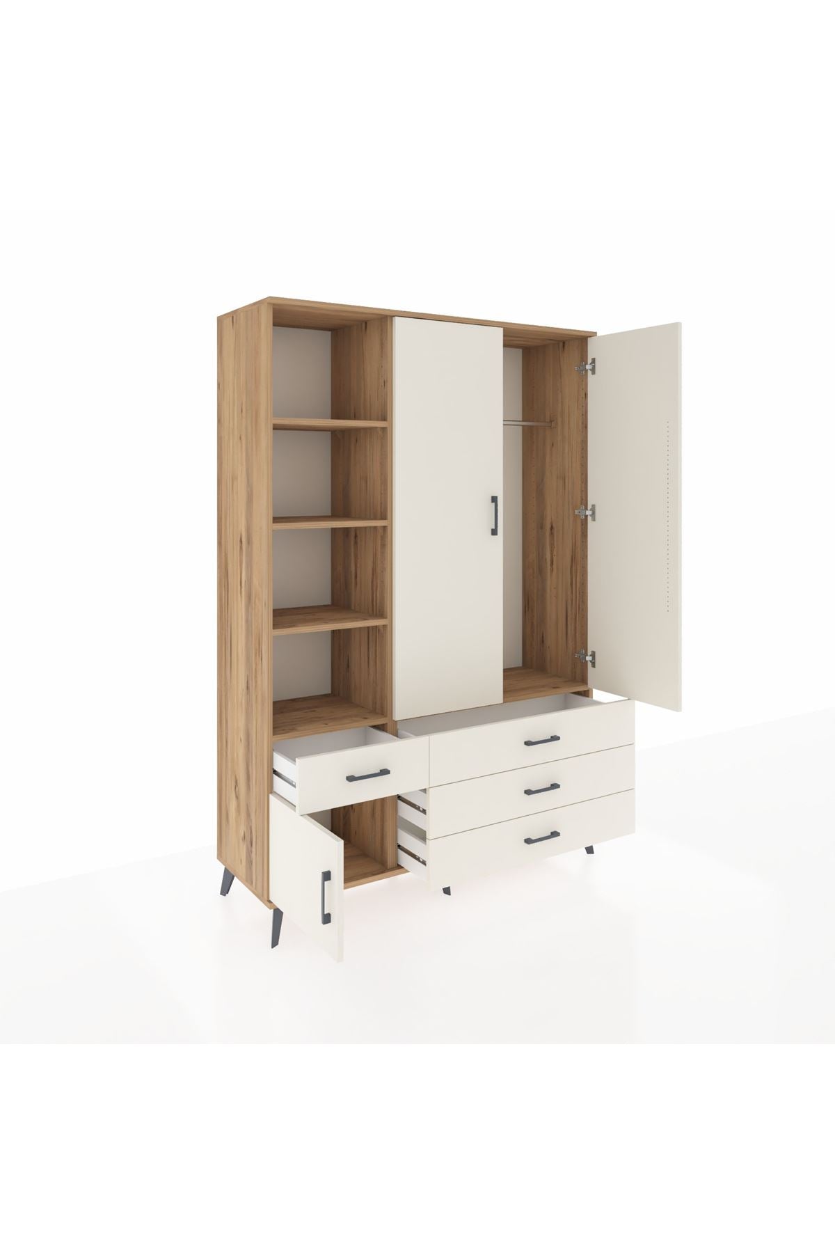 Hyperion Dolap 5 Raflı 4 Çekmeceli Tek Askılı 132x44x195 Çam-Aytaşı/Aytaşı – Fonksiyonel ve Şık Depolama Çözümü
