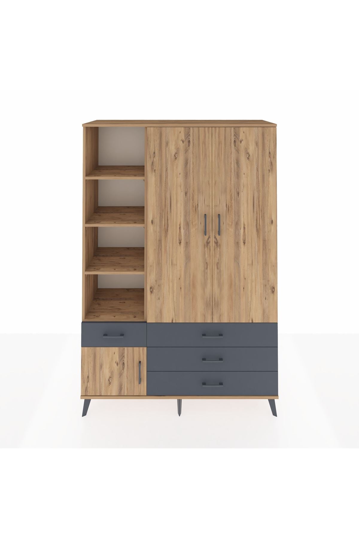 Hyperion Dolap 5 Raflı 4 Çekmeceli Tek Askılı 132x44x195 Çam-Çam/Antrasit – Düzen ve Şıklığın Yeni Adı