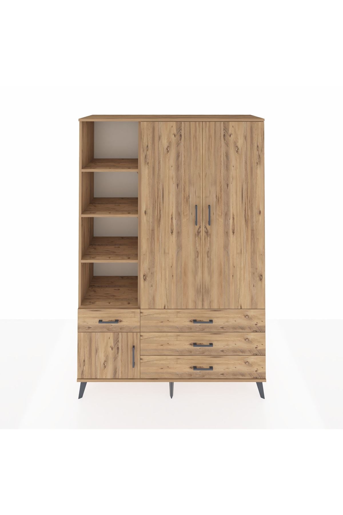 Hyperion Dolap 5 Raflı 4 Çekmeceli Tek Askılı 132x44x195 Çam-Çam/Çam