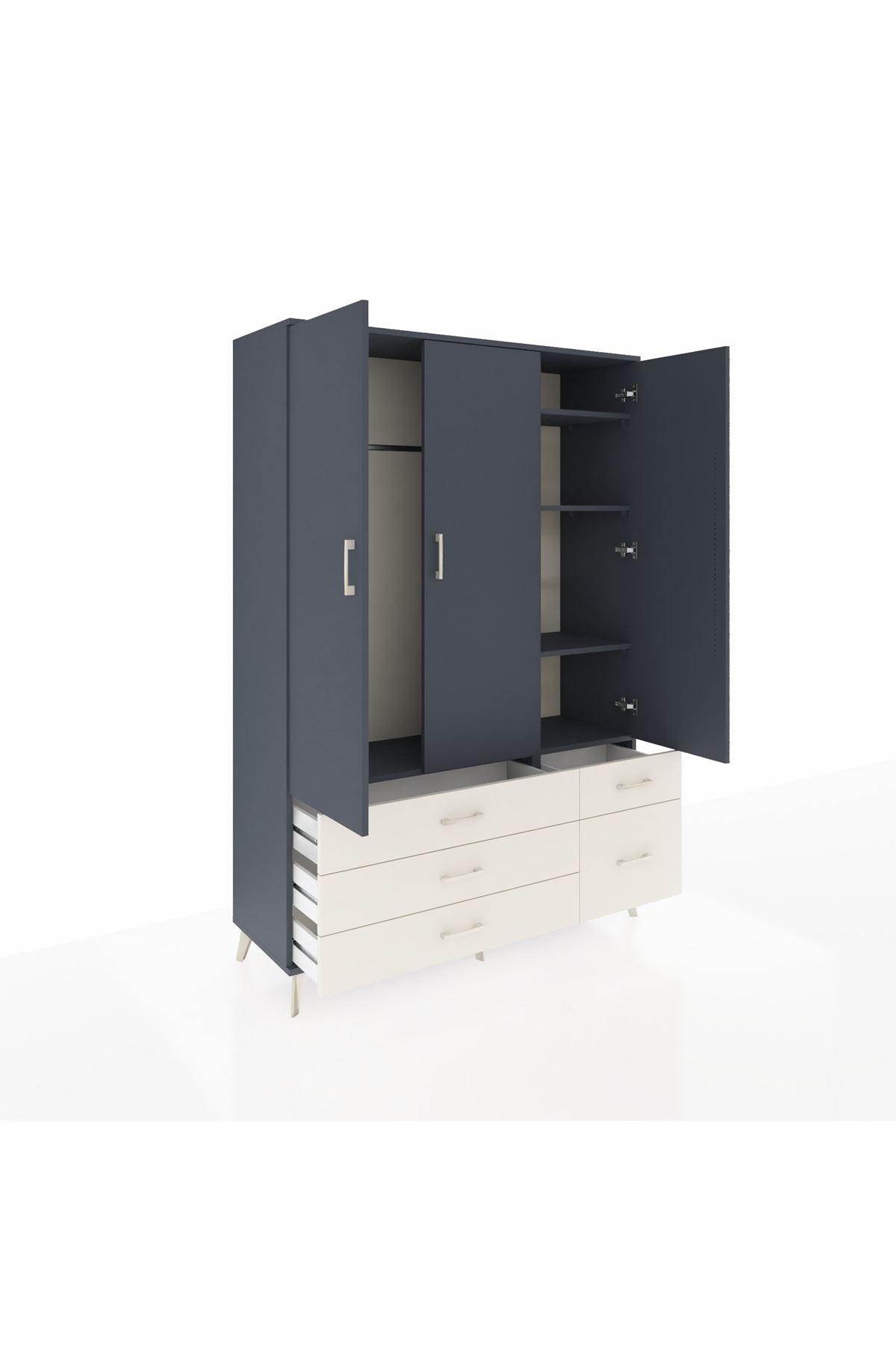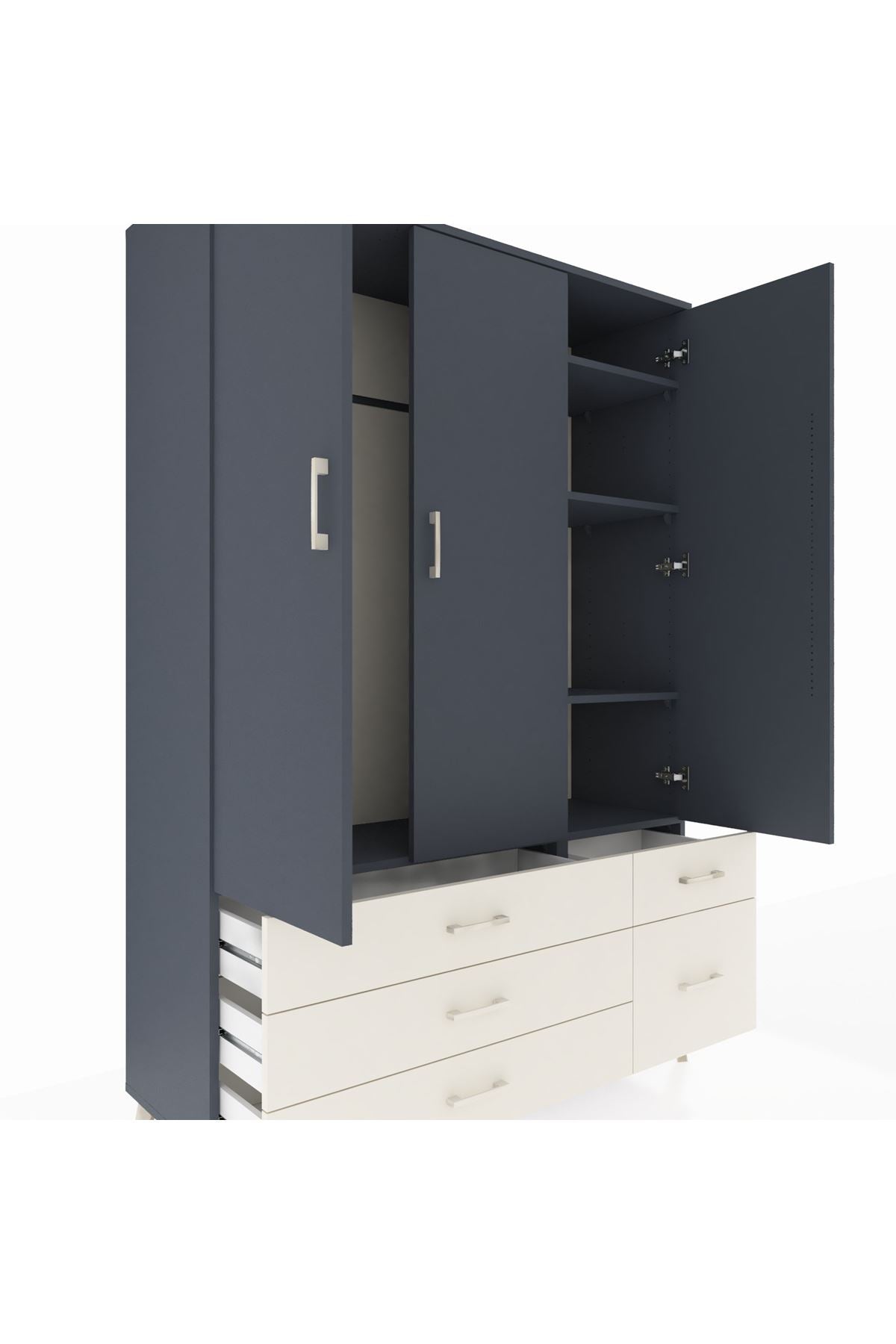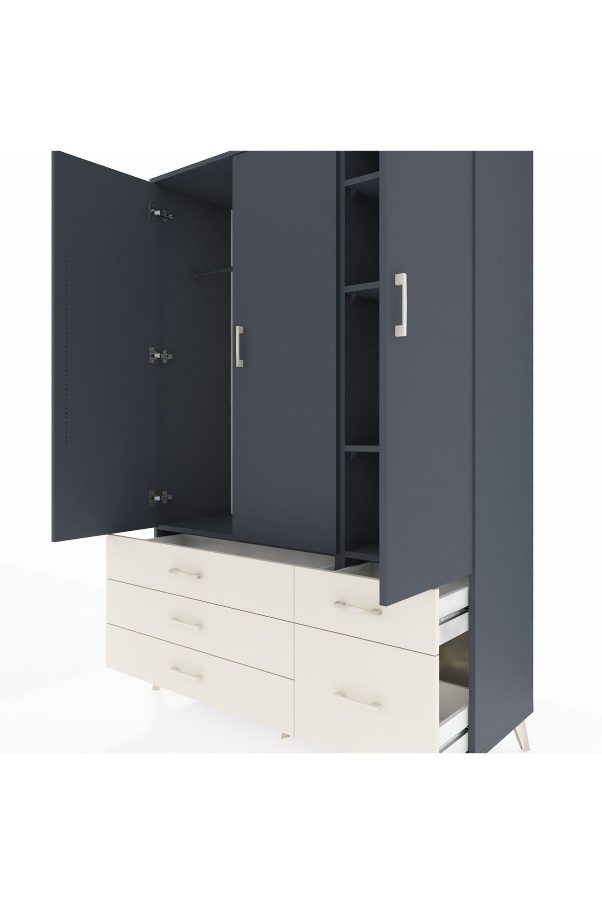 Hyperion Dolap 5 Raflı 5 Çekmeceli Tek Askılı 132x44x195 Antrasit-Antrasit/Aytaşı