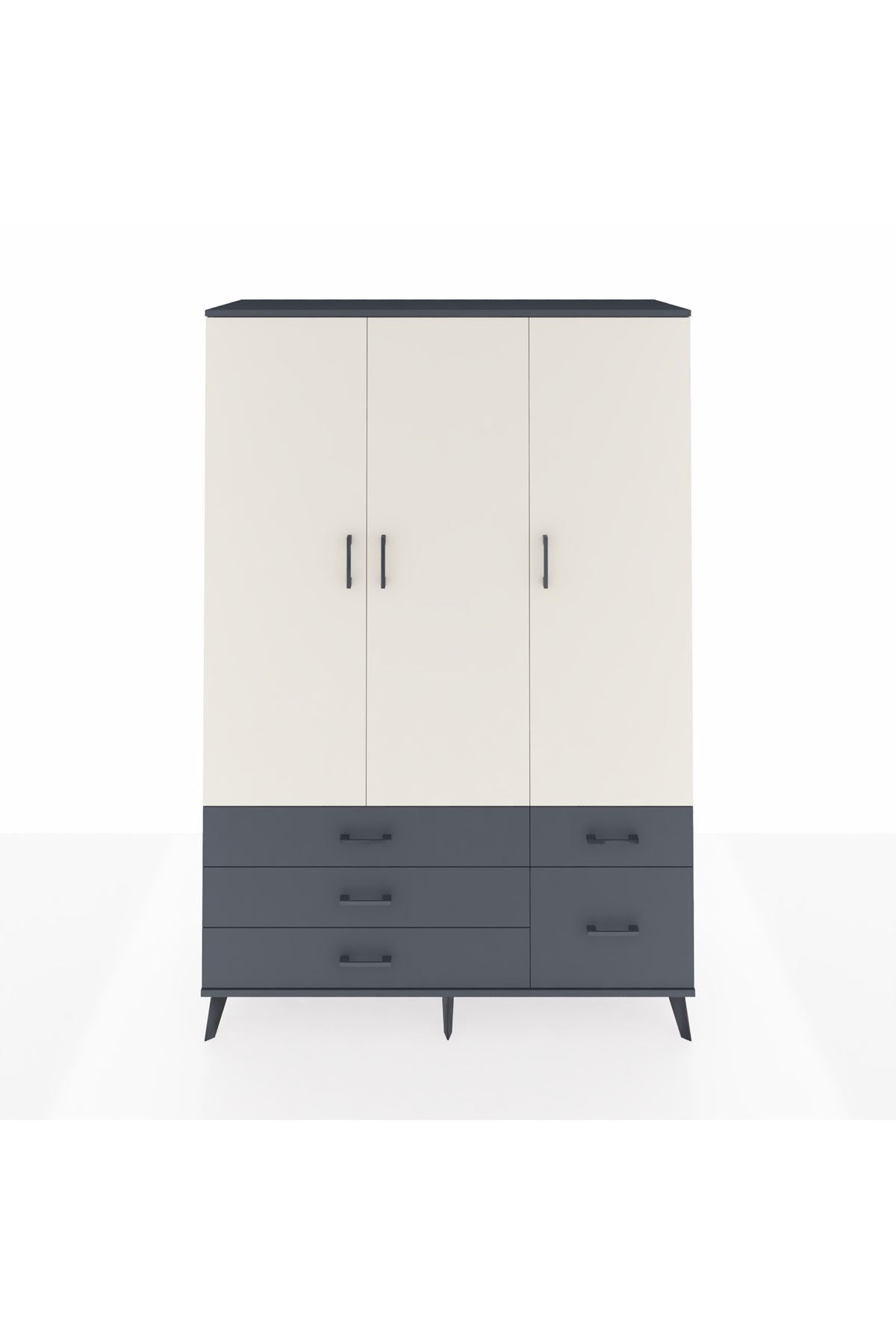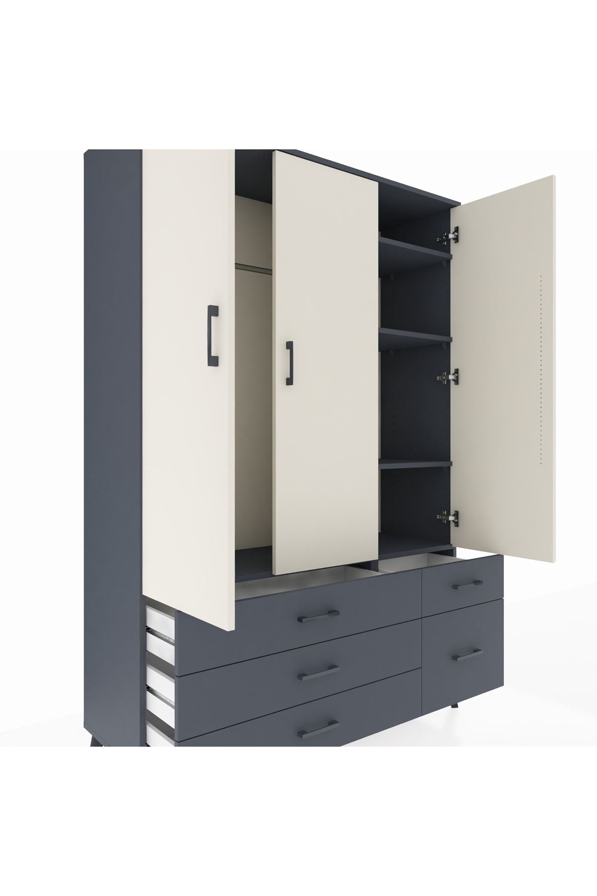 Hyperion Dolap 5 Raflı 5 Çekmeceli Tek Askılı 132x44x195 Antrasit-Aytaşı/Antrasit