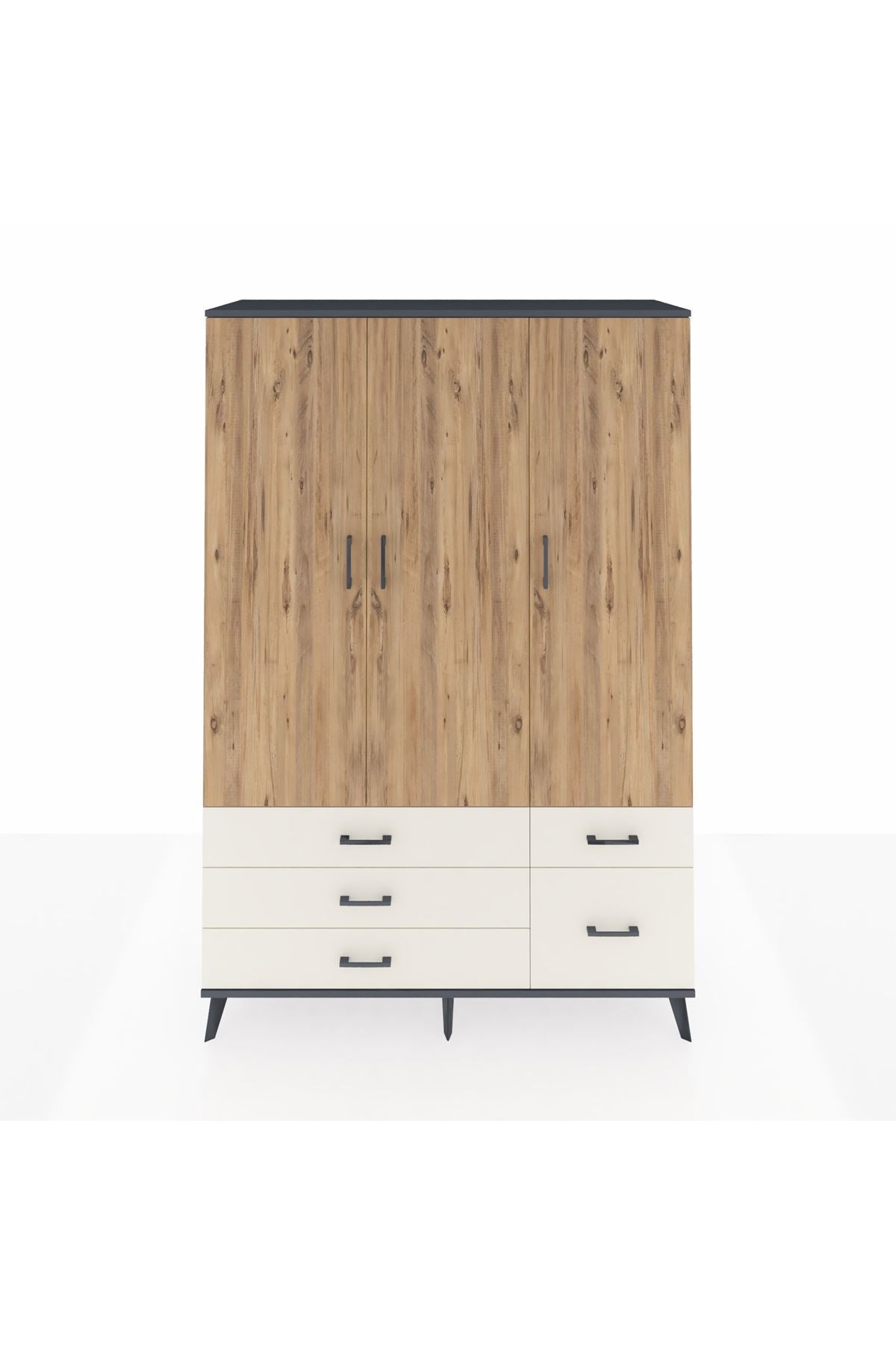 Hyperion Dolap 5 Raflı 5 Çekmeceli Tek Askılı 132x44x195 Antrasit-Çam/Aytaşı