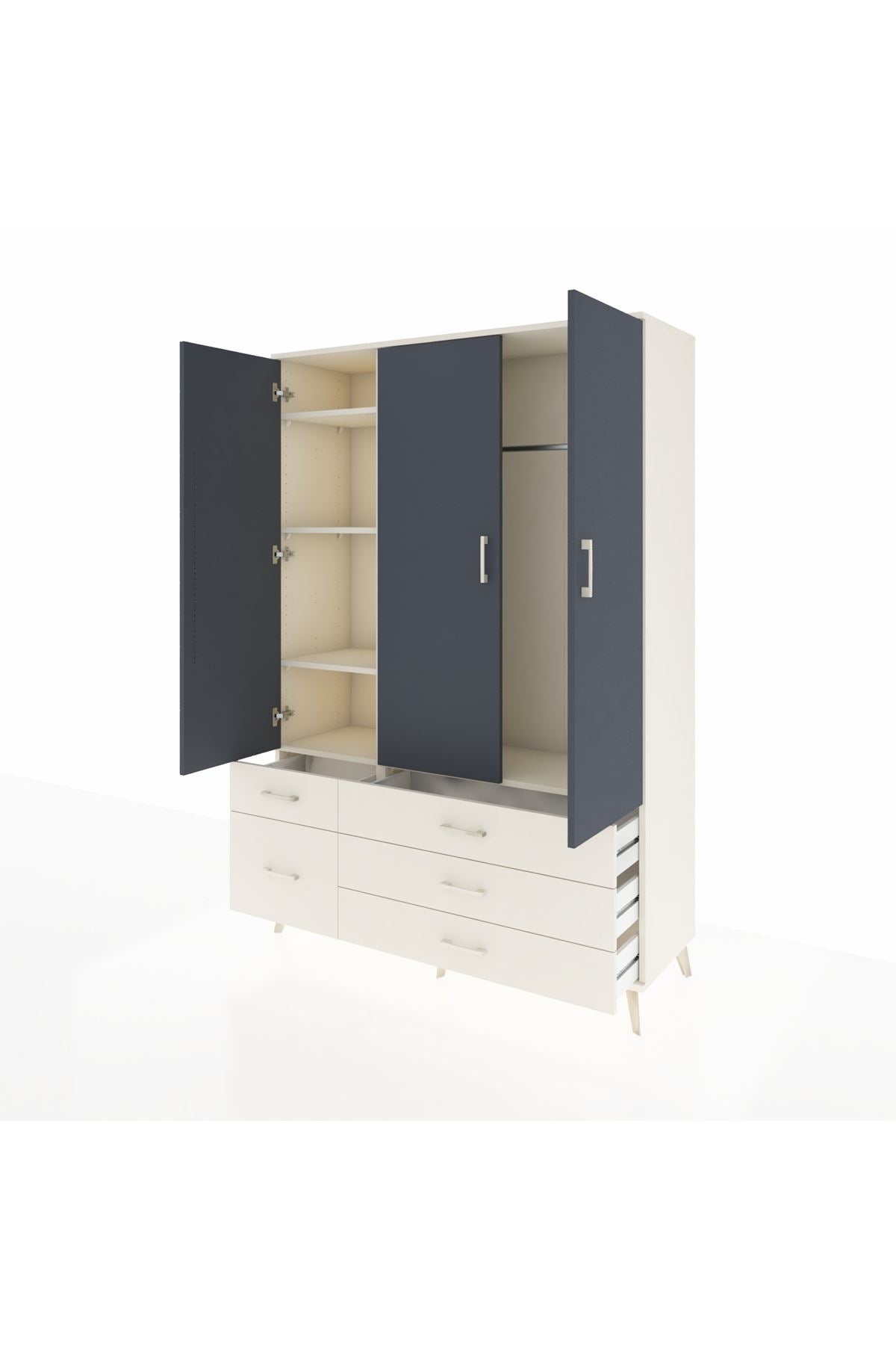 Hyperion Dolap 5 Raflı 5 Çekmeceli Tek Askılı 132x44x195 Aytaşı-Antrasit/Aytaşı