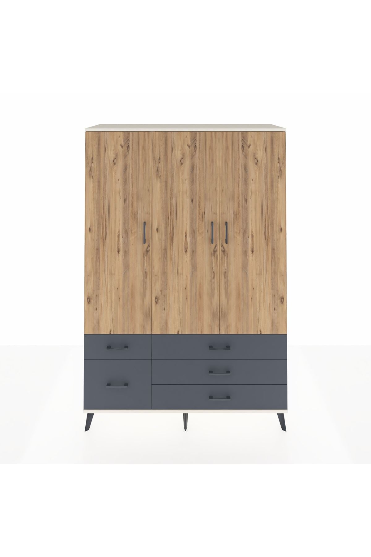 Hyperion Dolap 5 Raflı 5 Çekmeceli Tek Askılı 132x44x195 Aytaşı-Çam/Antrasit