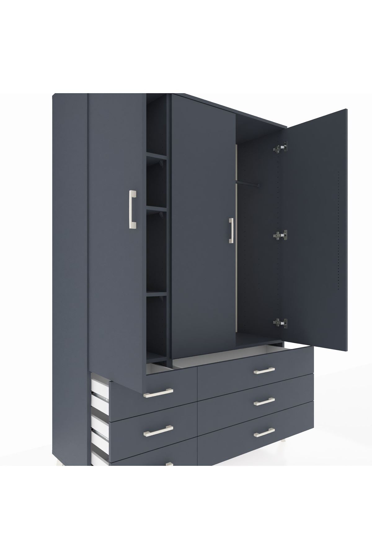 Hyperion Dolap 5 Raflı 6 Çekmeceli Tek Askılı 132x44x195 Antrasit-Antrasit/Antrasit