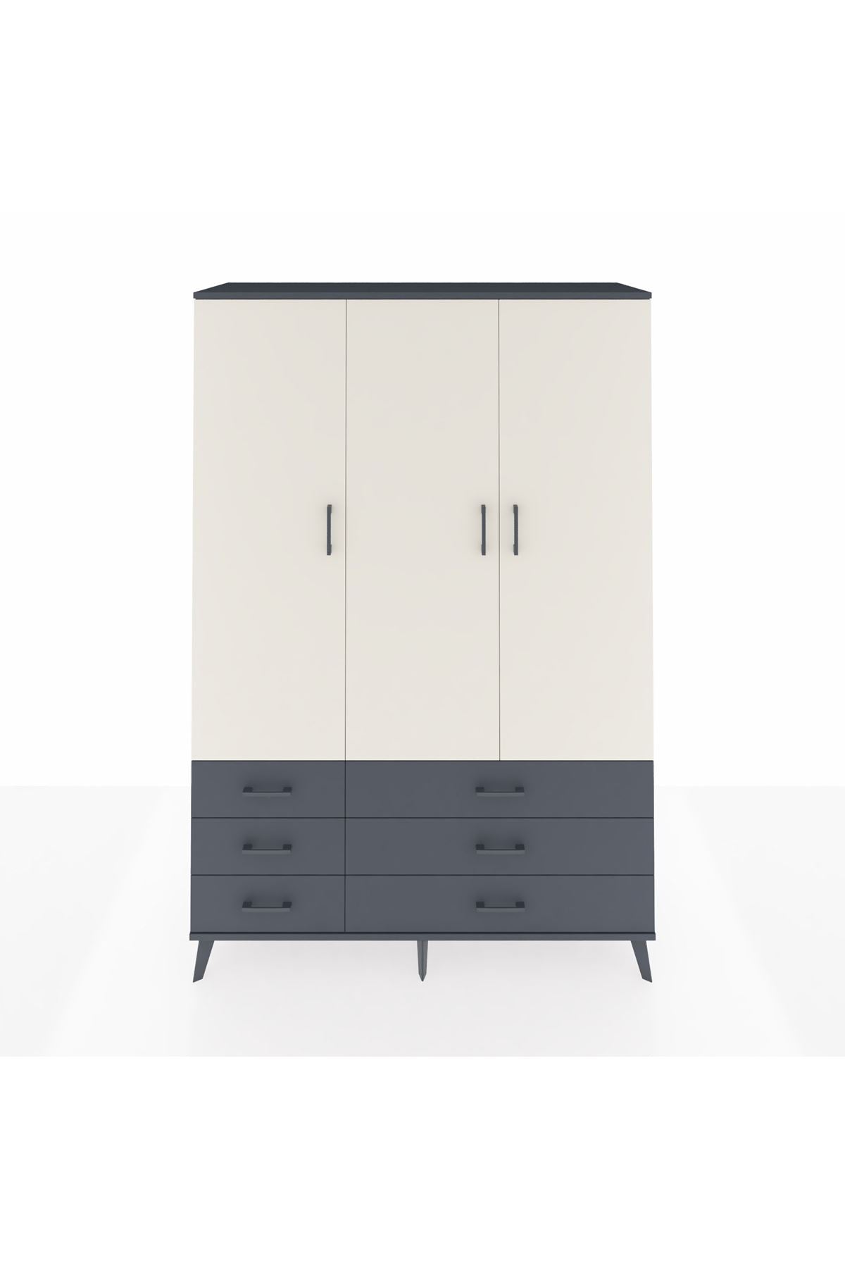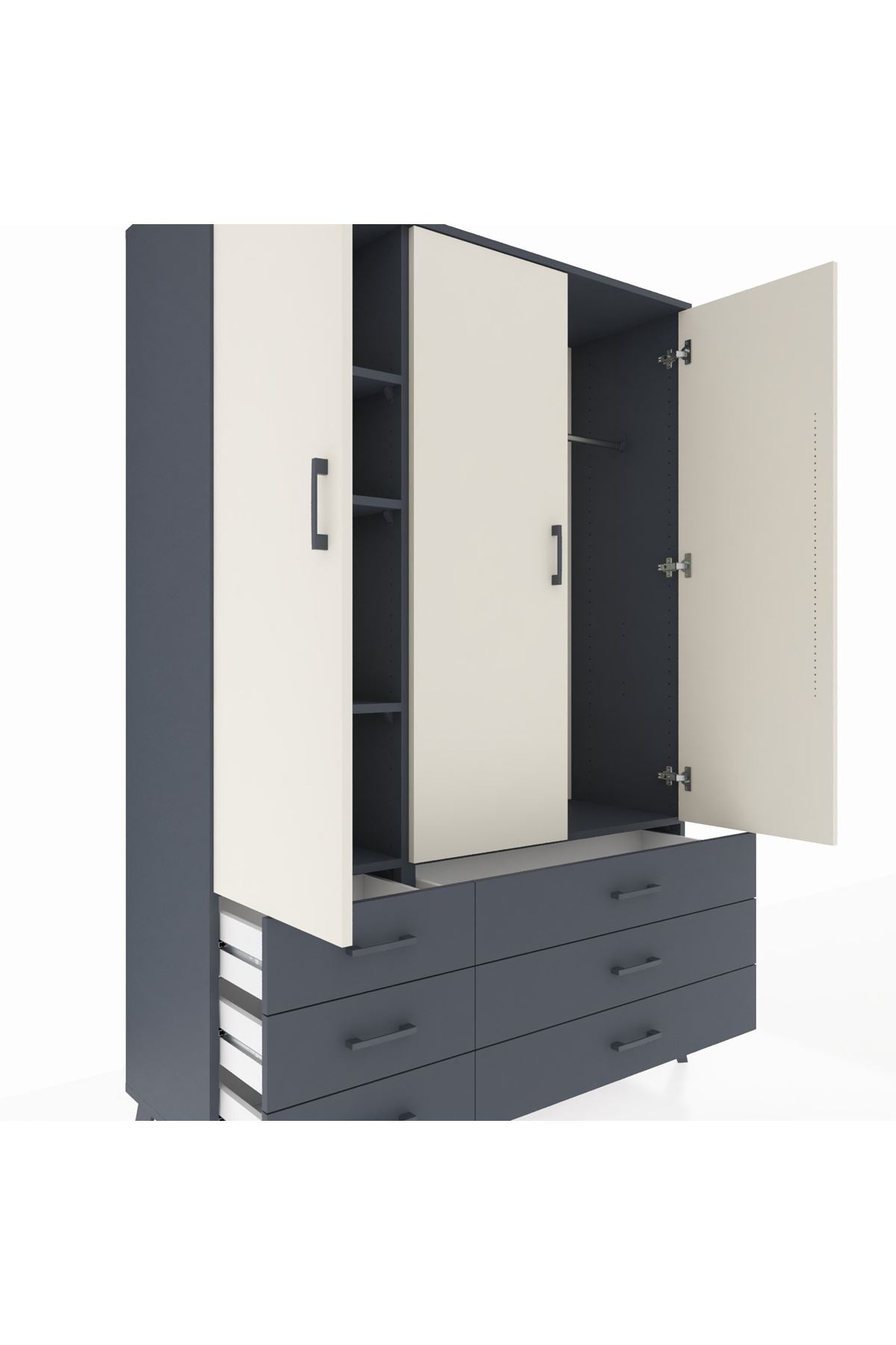 Hyperion Dolap 5 Raflı 6 Çekmeceli Tek Askılı 132x44x195 Antrasit-Aytaşı/Antrasit