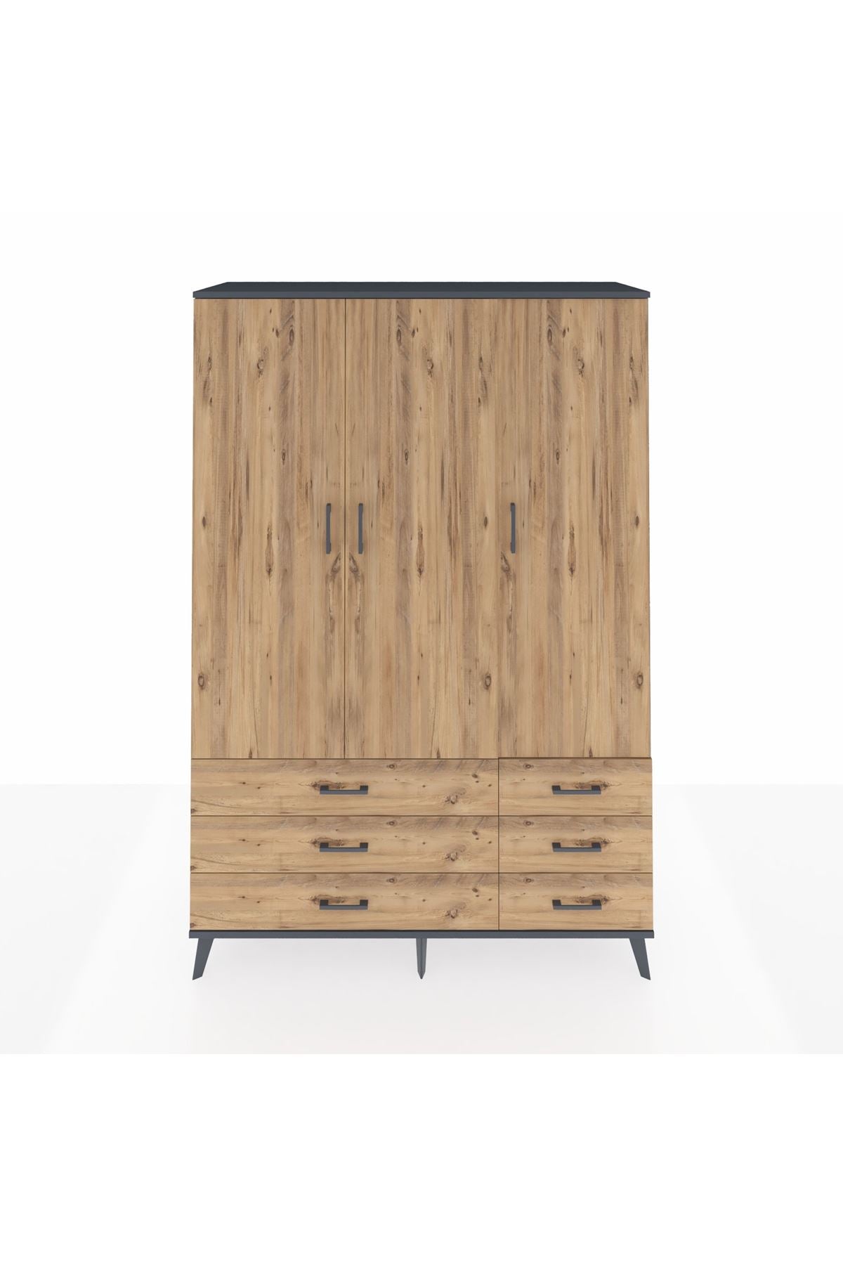 Hyperion Dolap 5 Raflı 6 Çekmeceli Tek Askılı 132x44x195 Antrasit-Çam/Çam