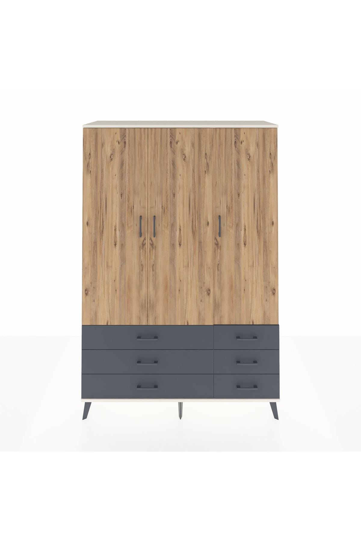Hyperion Dolap 5 Raflı 6 Çekmeceli Tek Askılı 132x44x195 Aytaşı-Çam/Antrasit