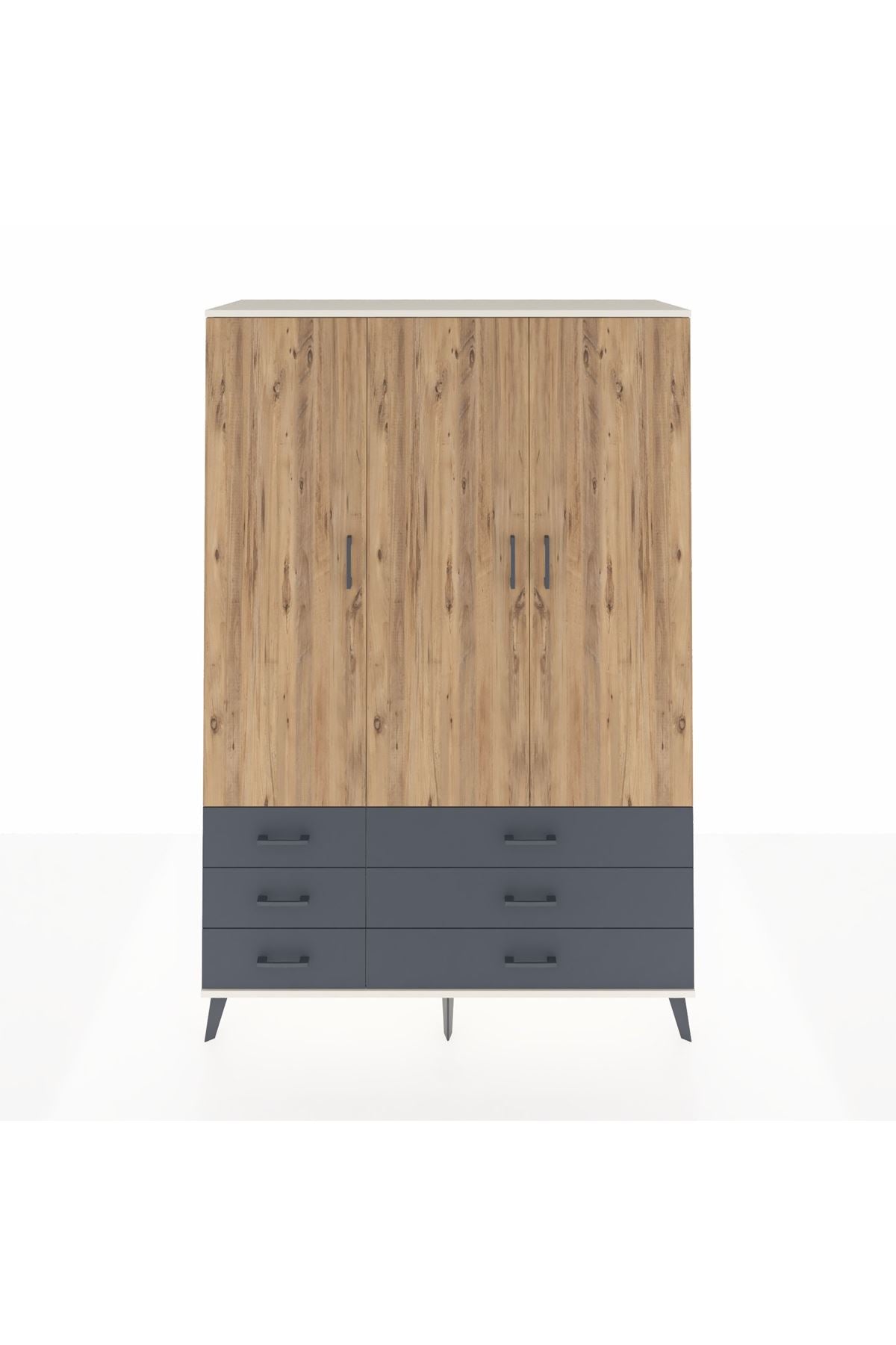 Hyperion Dolap 5 Raflı 6 Çekmeceli Tek Askılı 132x44x195 Aytaşı-Çam/Antrasit