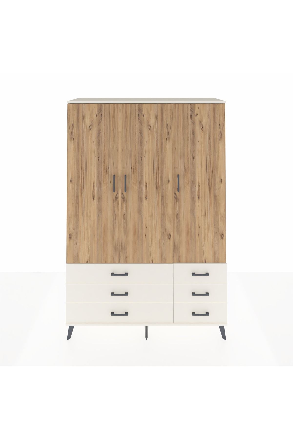 Hyperion Dolap 5 Raflı 6 Çekmeceli Tek Askılı 132x44x195 Aytaşı-Çam/Aytaşı