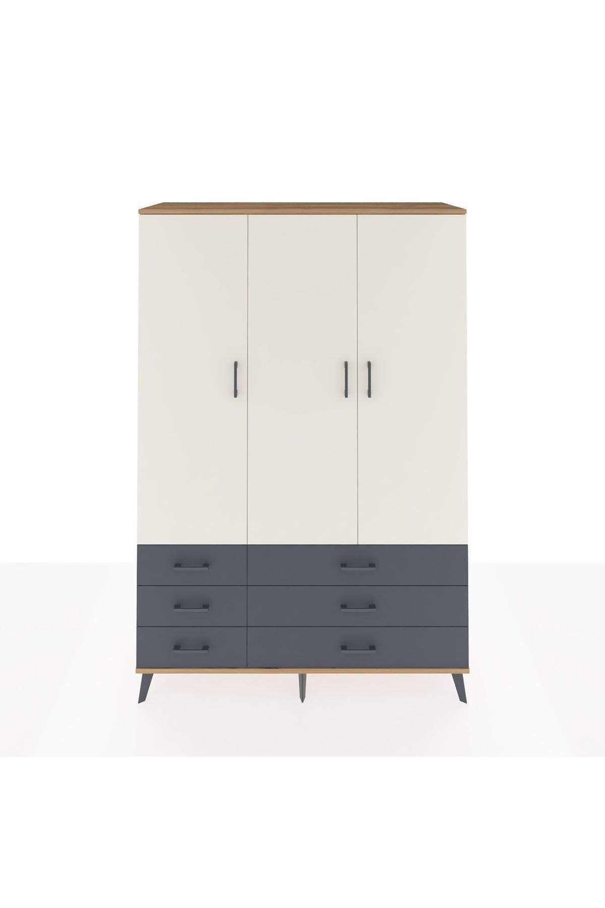 Bu dolap, evinizde düzeni ve estetiği bir arada sunar. Aytaşı ve Antrasit kontrastı ile Atlas Çam sıcaklığı arasından seçim yaparak mekânınıza uygun atmosferi yaratabilirsiniz. Metal ayakları sağlam ve dayanıklı, metal kulplar uzun ömürlü kullanım sunar. İç bölümdeki 5 raf, kullanım ihtiyacına göre ayarlanabilir; tek askılık alanı ceket, kaban veya uzun giysiler için ideal yükseklik sağlar. Alt bölümdeki 6 çekmece sayesinde küçük tekstil ürünleri, aksesuarlar ve günlük eşyalar düzenli biçimde saklanır. Çekmece sayısı konfigüre edilebilir, ihtiyaç doğrultusunda azaltma veya artırma seçenekleri mevcuttur.