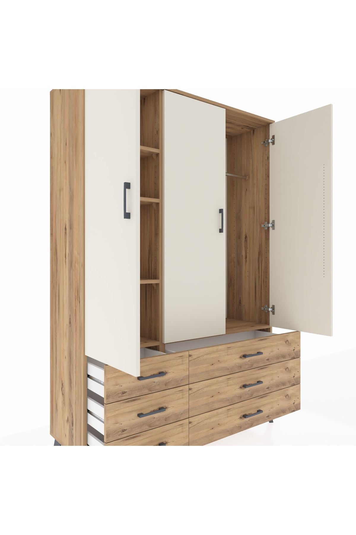 Hyperion Dolap 5 Raflı 6 Çekmeceli Tek Askılı 132x44x195 Çam-Aytaşı/Çam – Düzen ve Estetiğin Buluşması