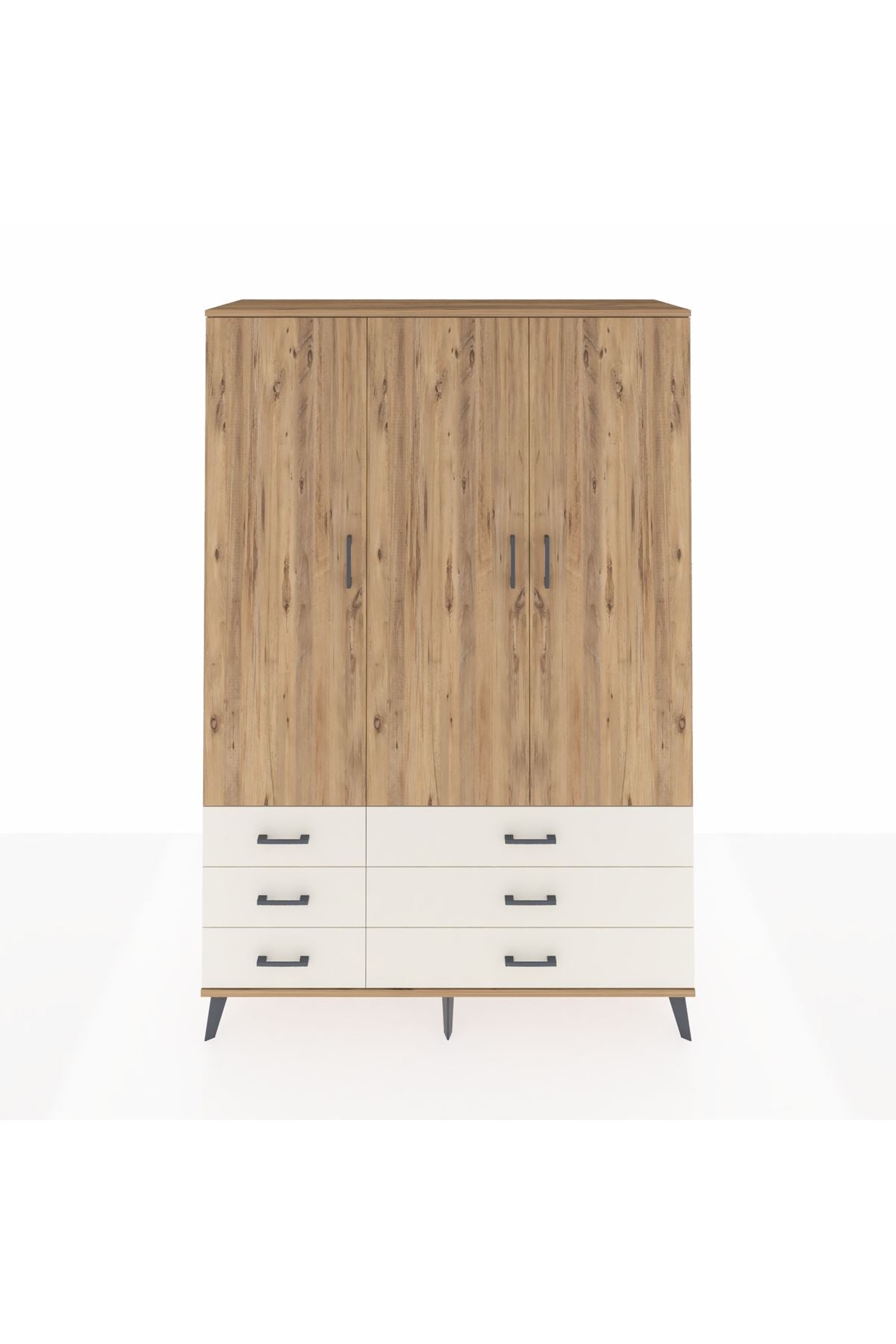 Hyperion Dolap 5 Raflı 6 Çekmeceli Tek Askılı 132x44x195 Çam-Çam/Aytaşı – Düzen ve Estetiğin Buluşması
