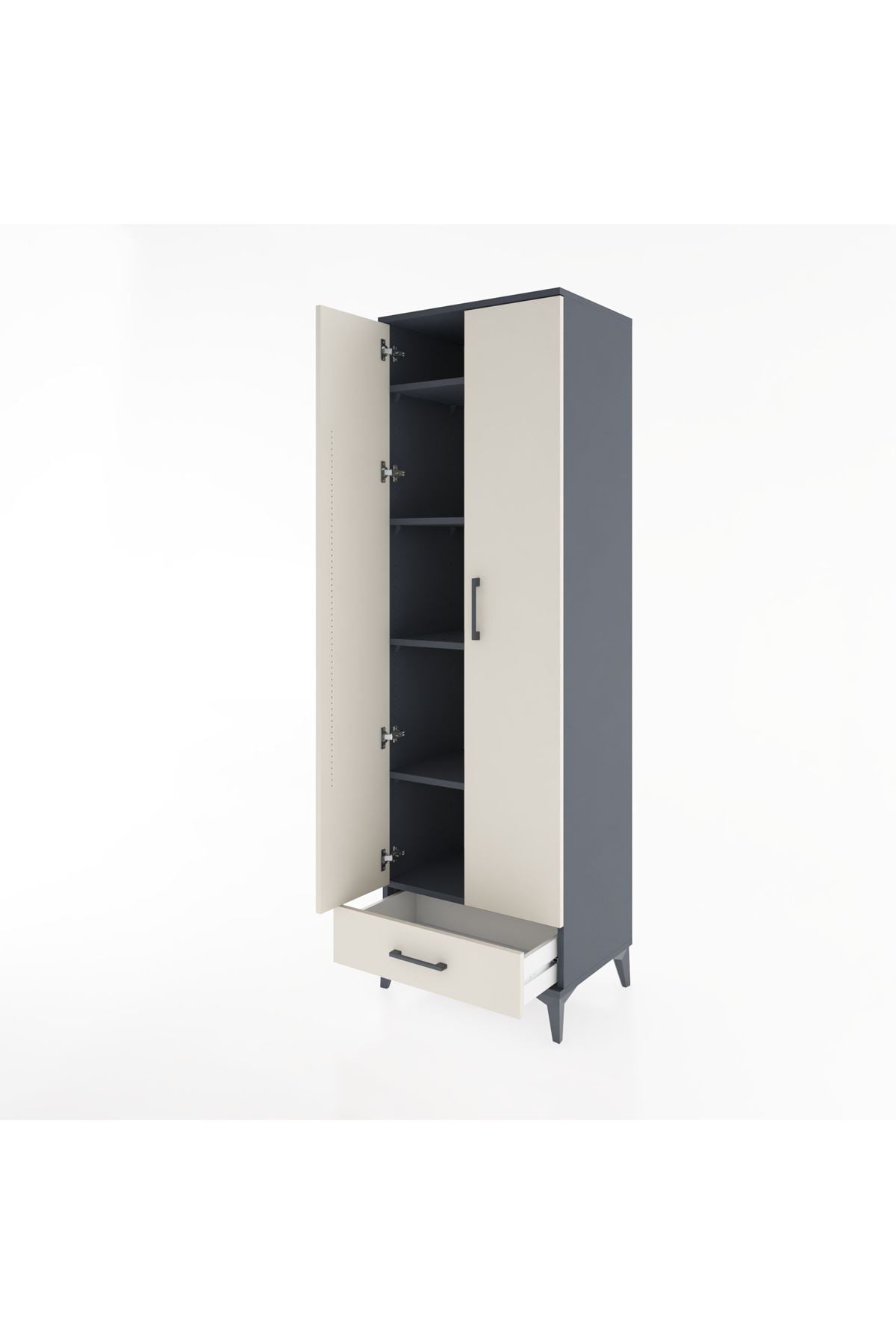 Hyperion Dolap 5 Raflı Tek Çekmeceli Tek Askılı 60x44x195 Antrasit-Aytaşı