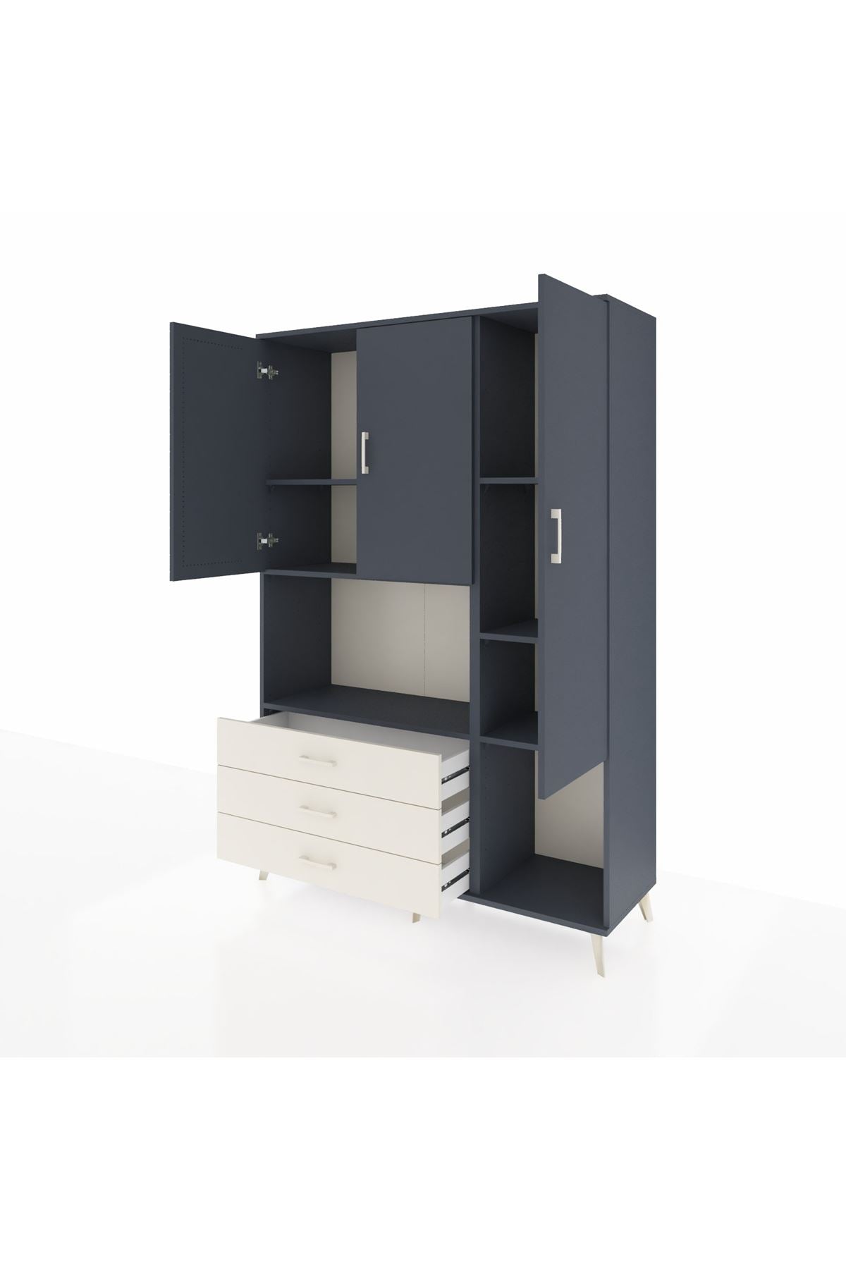 Hyperion Dolap 6 Raflı 3 Çekmeceli 3 Kapaklı 132x44x195 Antrasit-Antrasit/Aytaşı