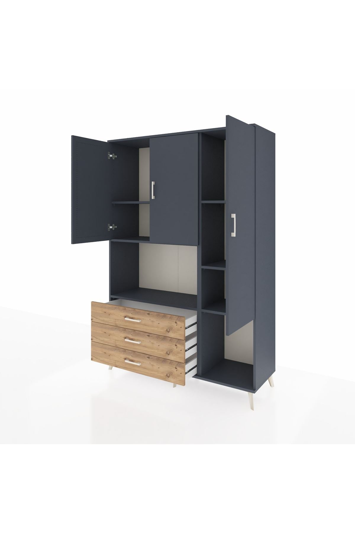 Hyperion Dolap 6 Raflı 3 Çekmeceli 3 Kapaklı 132x44x195 Antrasit-Antrasit/Çam