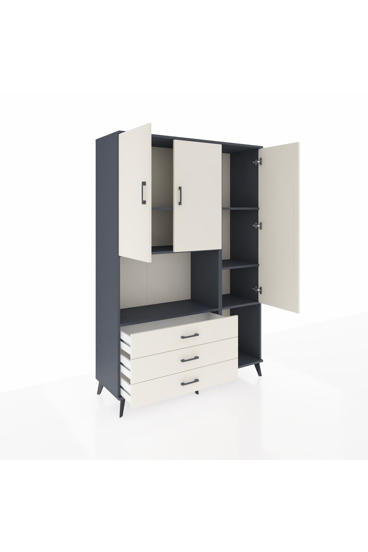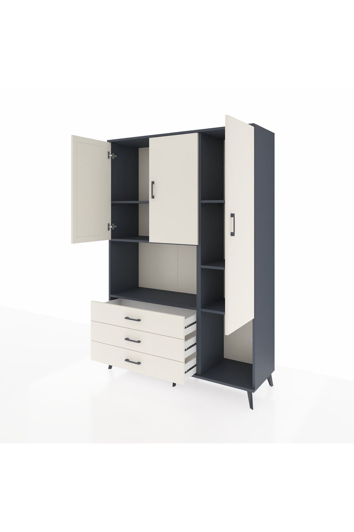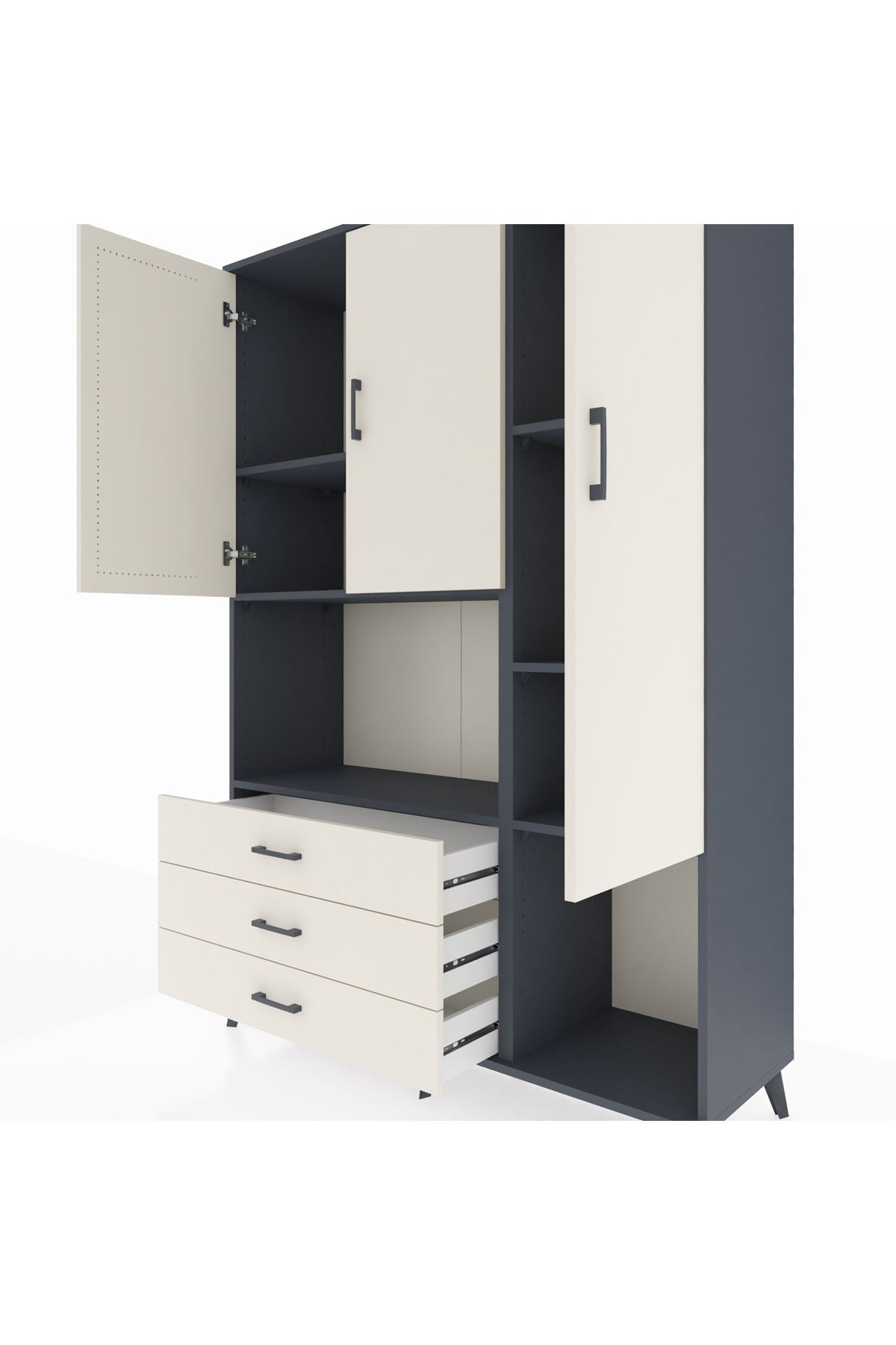 Hyperion Dolap 6 Raflı 3 Çekmeceli 3 Kapaklı 132x44x195 Antrasit-Aytaşı/Aytaşı