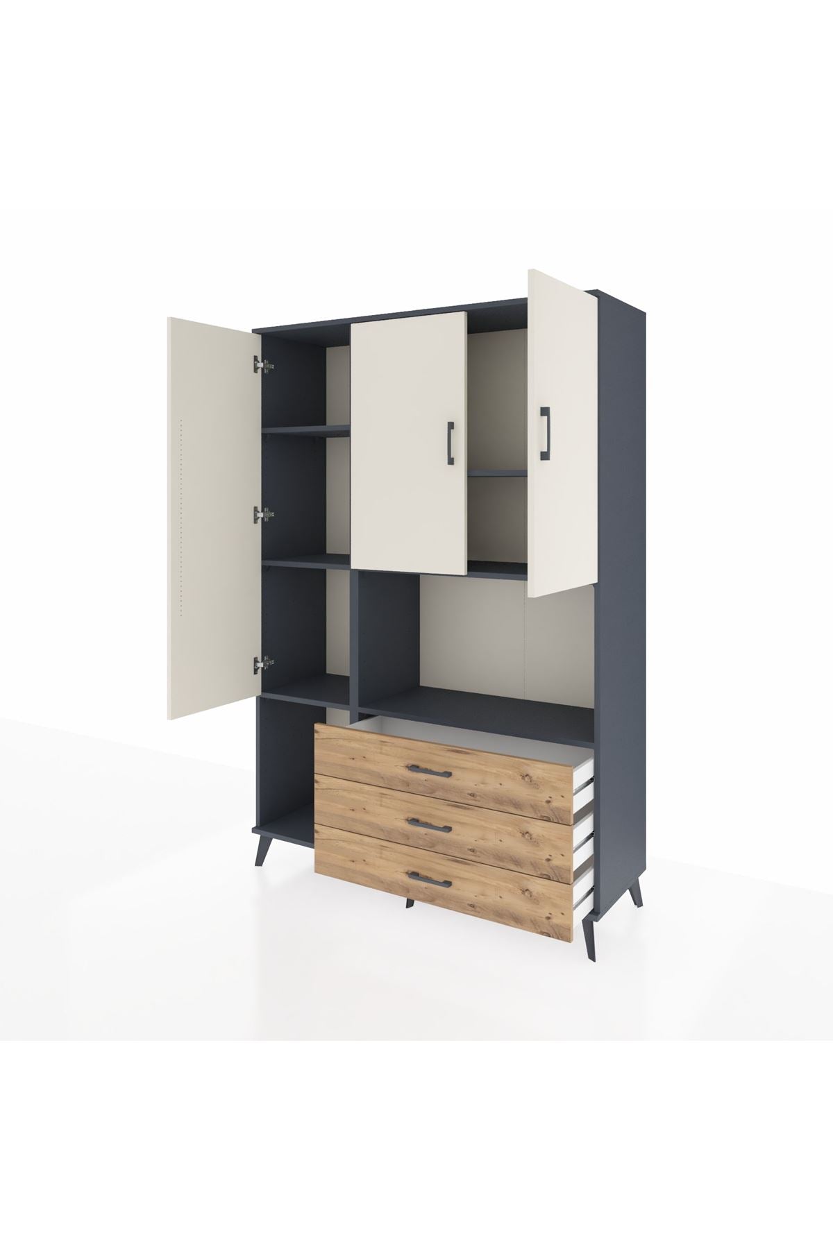 Hyperion Dolap 6 Raflı 3 Çekmeceli 3 Kapaklı 132x44x195 Antrasit-Aytaşı/Çam