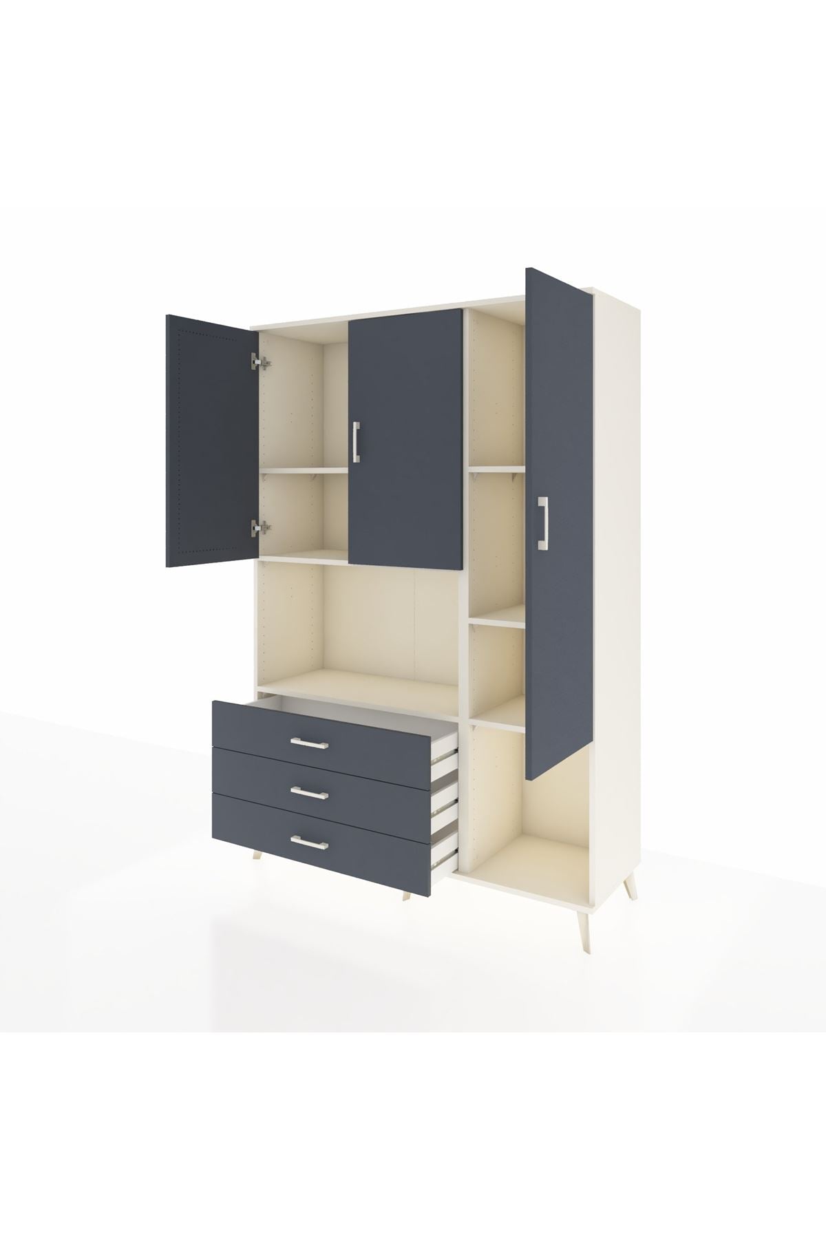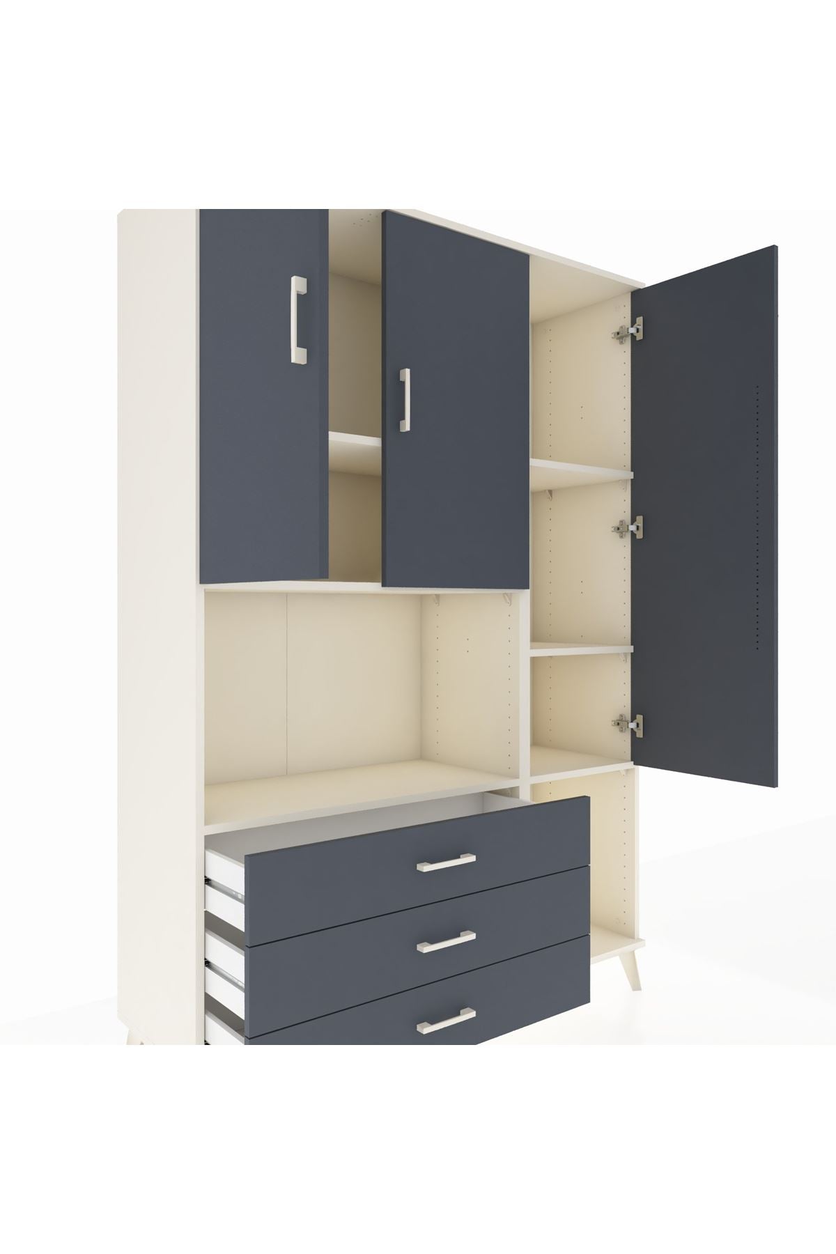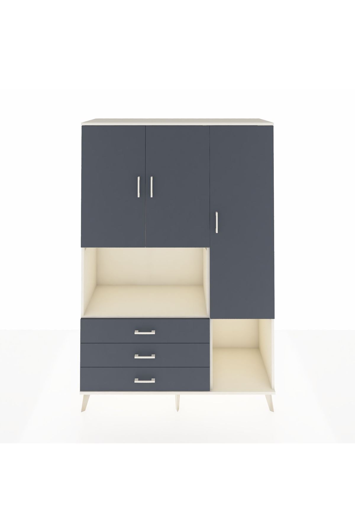 Hyperion Dolap 6 Raflı 3 Çekmeceli 3 Kapaklı 132x44x195 Aytaşı-Antrasit/Antrasit