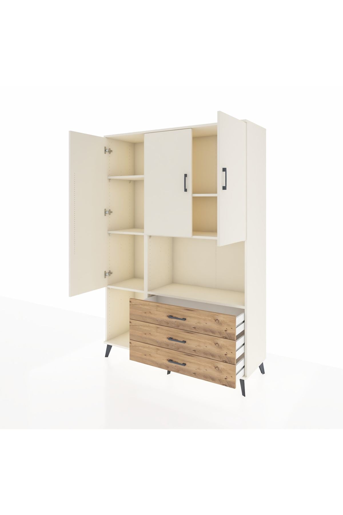 Hyperion Dolap 6 Raflı 3 Çekmeceli 3 Kapaklı 132x44x195 Aytaşı-Aytaşı/Çam
