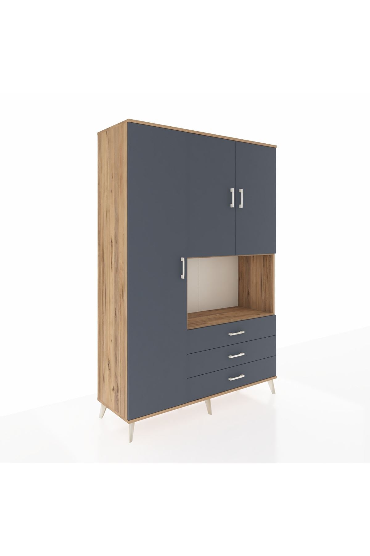 Hyperion Dolap 6 Raflı 3 Çekmeceli 3 Kapaklı 132x44x195 Çam-Antrasit/Antrasit